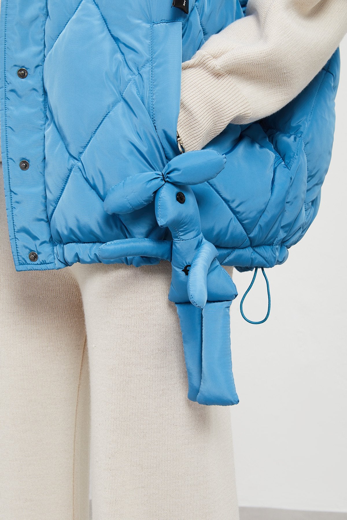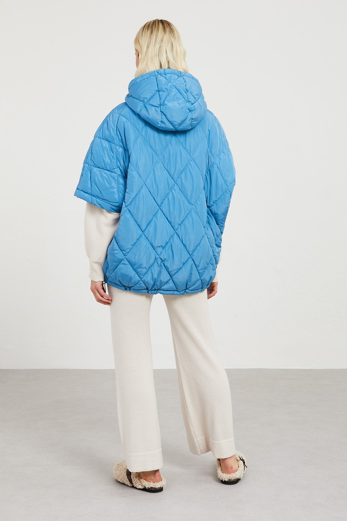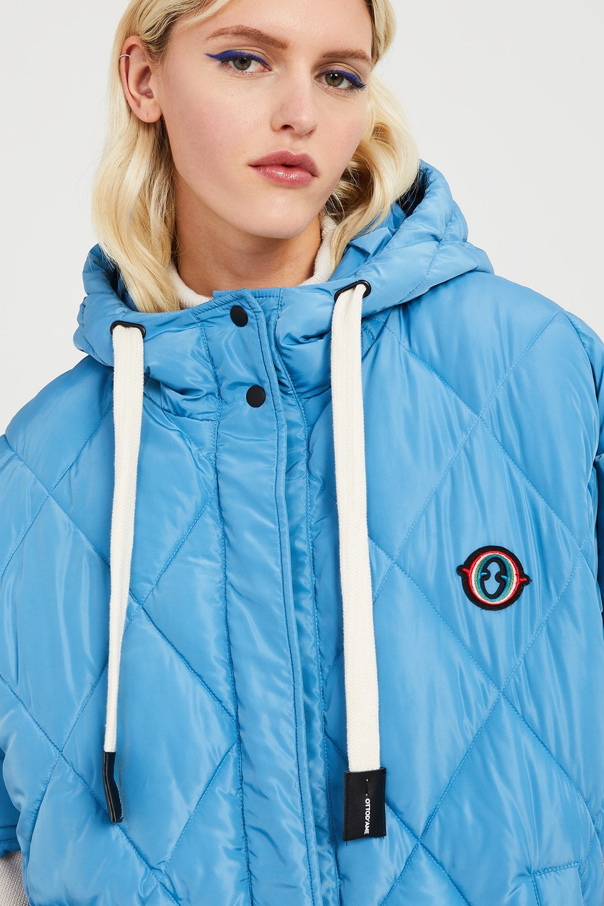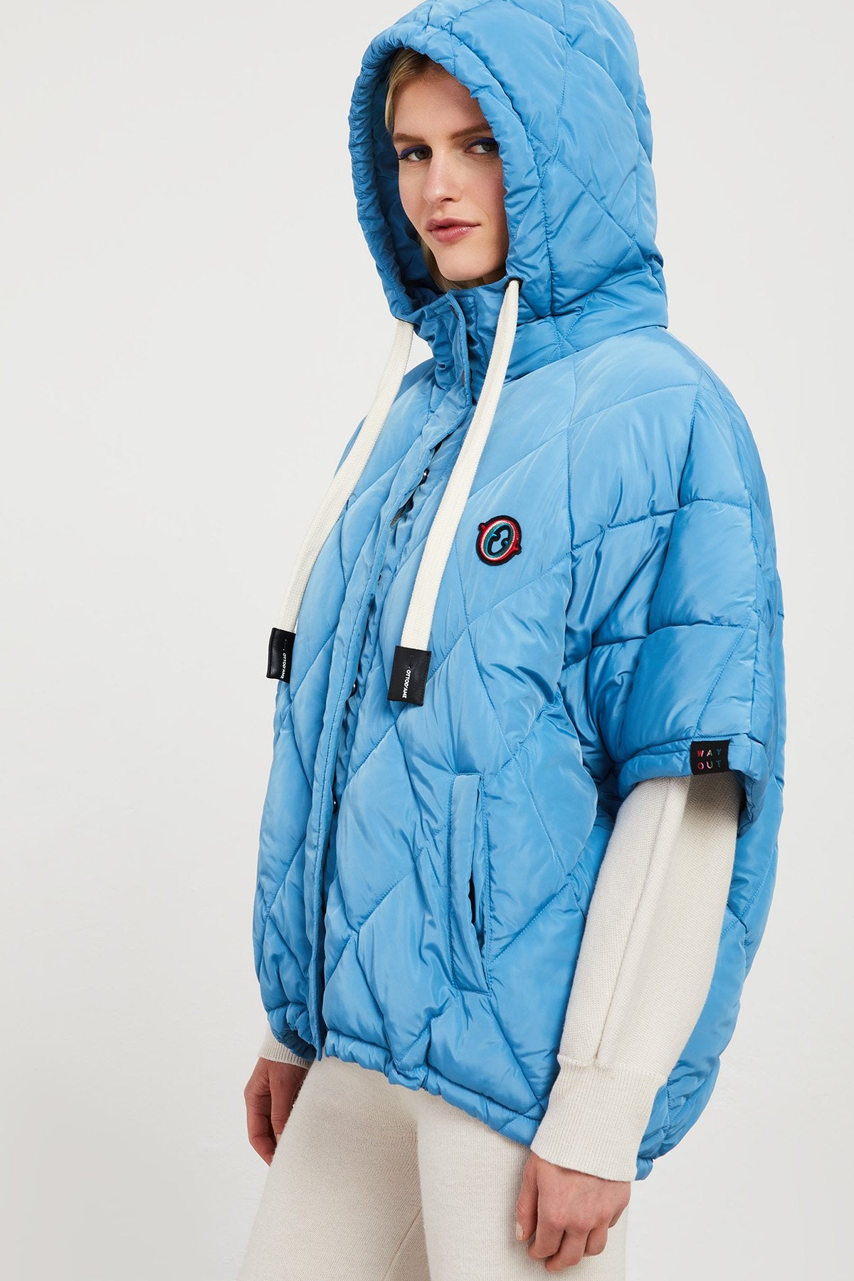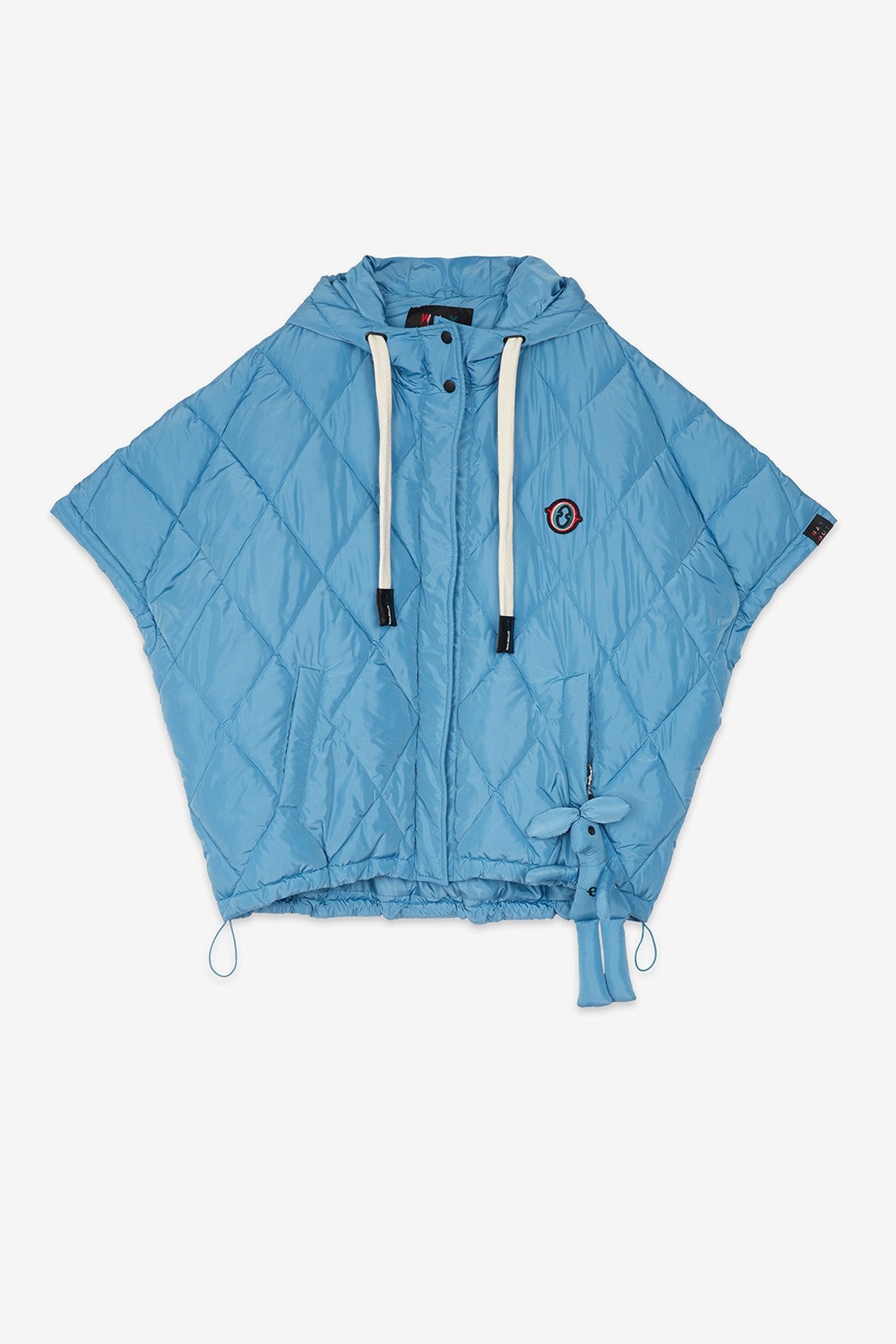 Piumino cappa Wayout undurchlässiges Modello cappa senza maniche, Motiv trapuntato, Cappuccio mit Coulisse und mehrfarbigem Logo Ricamato.