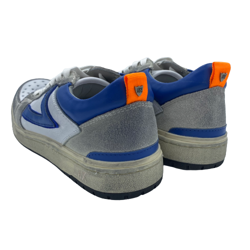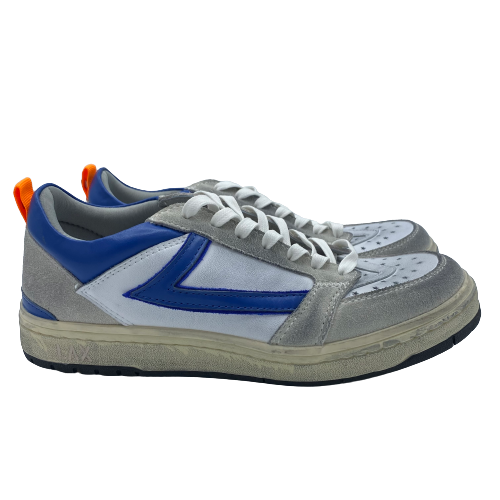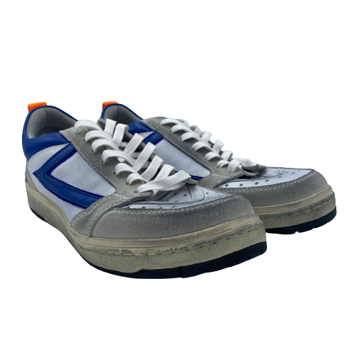 Sneakers HTC in pelle bianca con inserti in pelle blu