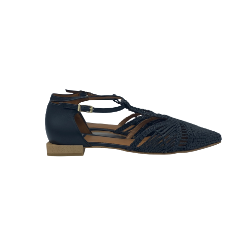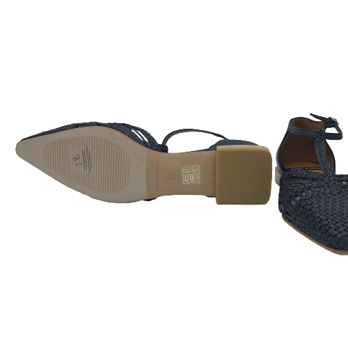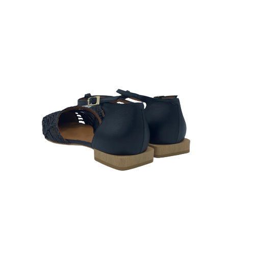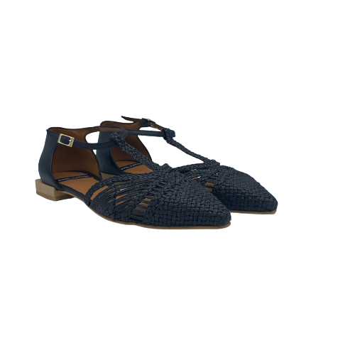 Ballerina a punta con cinturino a T Angel Alarcon in pelle e rafia nera