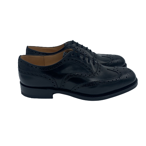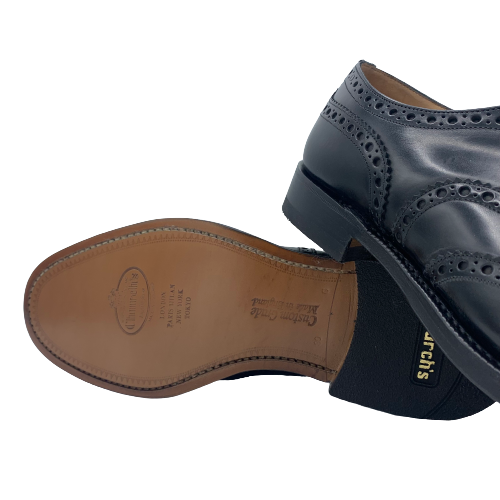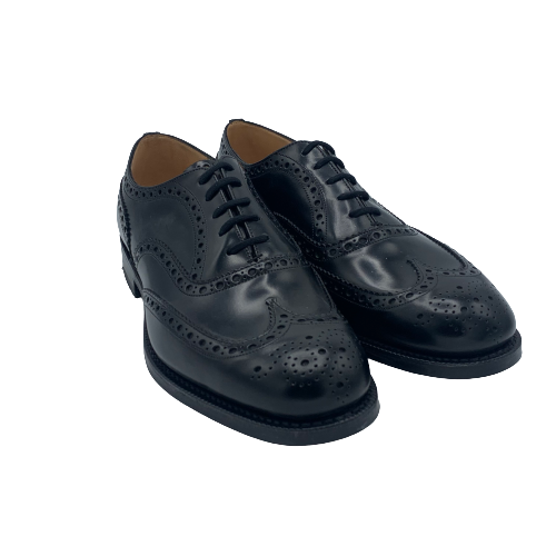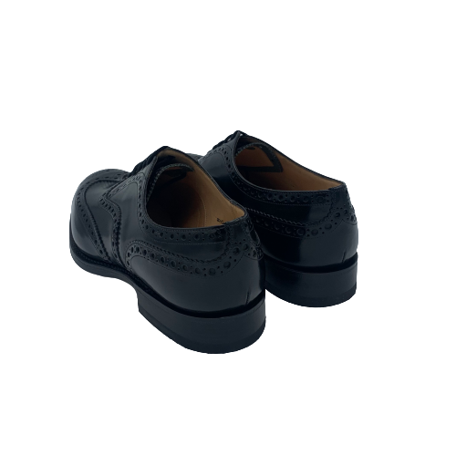 Oxford Church's Full Brogue Pelle di vitello nera con finitura spazzolata lucida Forma 81 Tripla suola cuoio con tacco in gomma <br> Foderata pelle Costruzione Goodyear <br> Stemma Church's su soletta , suola e tacco Hergestellt in England