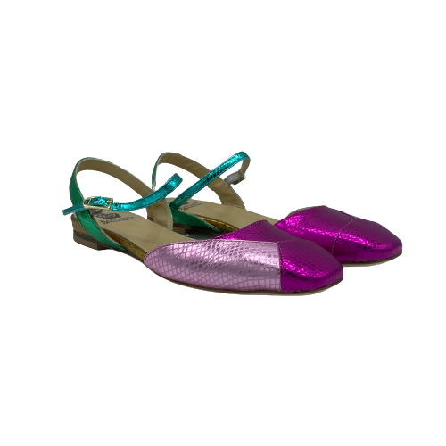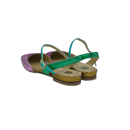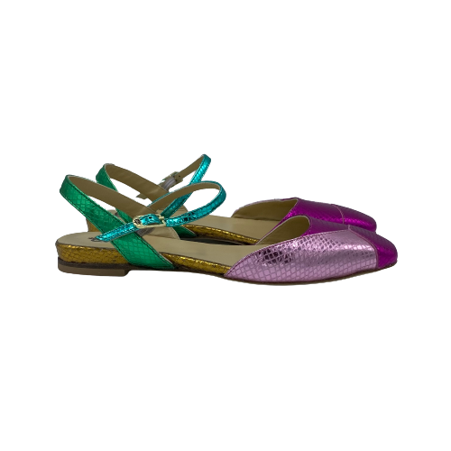 Chanel L’arianna con punta quadra in pelle laminata con effetto pitonato multicolor