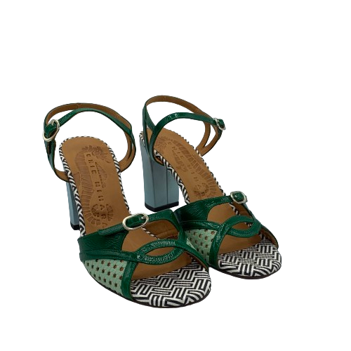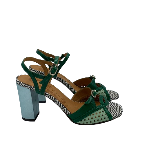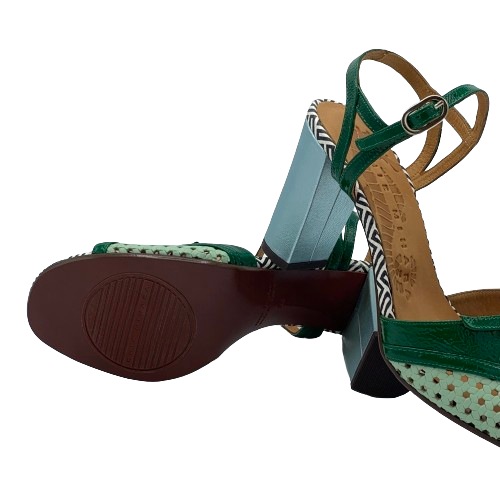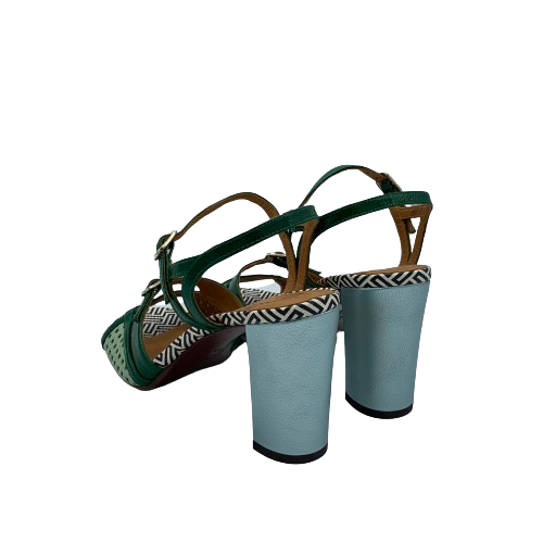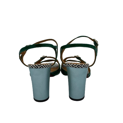 Sandalo Chie Mihara multicolor in pelle verde, azzurra e con dettagli il pelle stampata bianca e nero