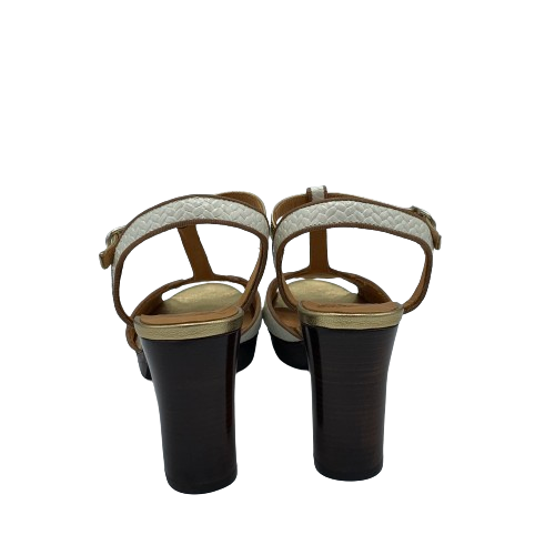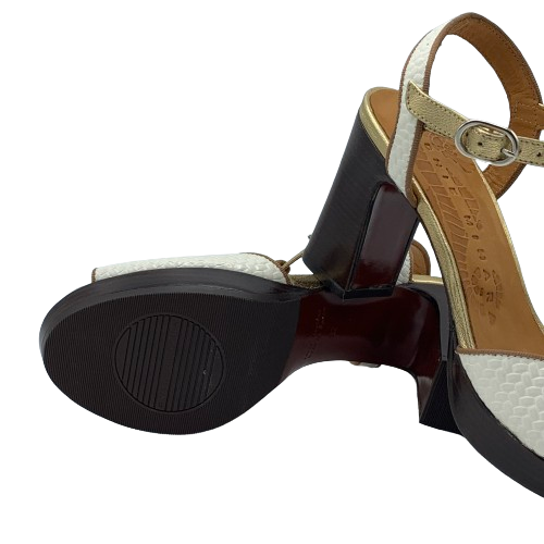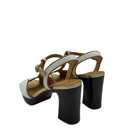 Sandalo Chie Mihara in pelle stampata bianca e dettagli in pelle color platino