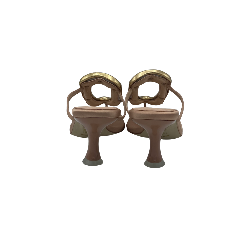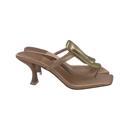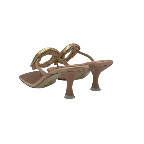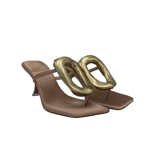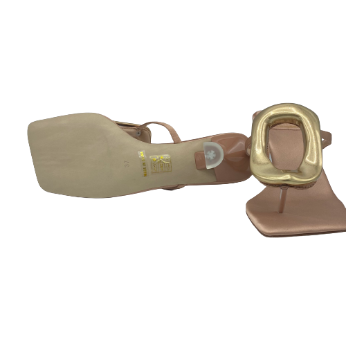 Sandalo infradito Jeffrey Campbell in raso rosa con dettaglio in metallo color oro