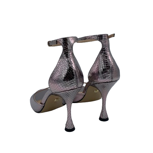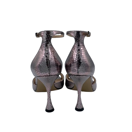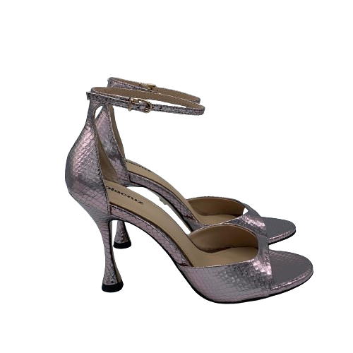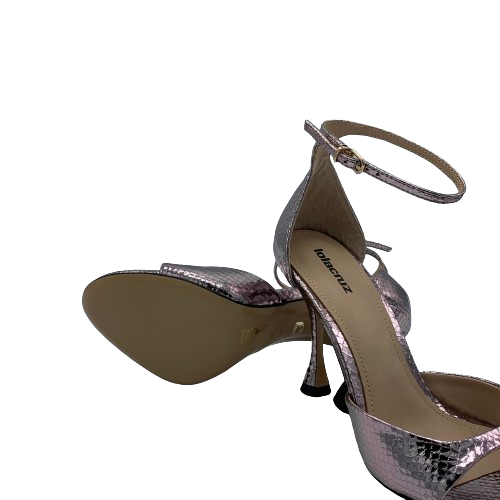 Sandalo Lola Cruz in pelle laminata con effetto pitonato color visone