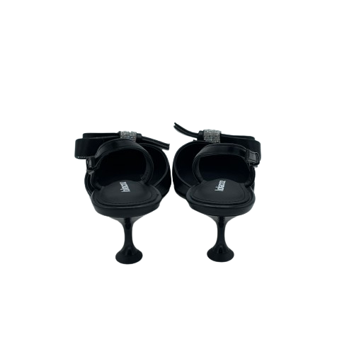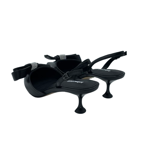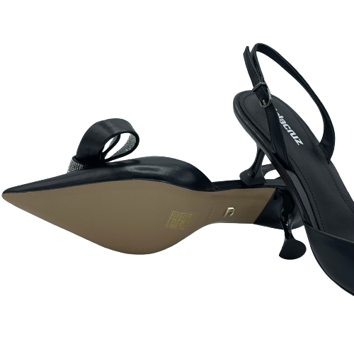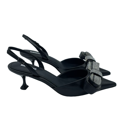Slingback Lola Cruz a punta in pelle nera con dettaglio gioiello argento