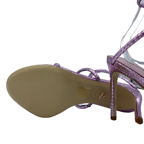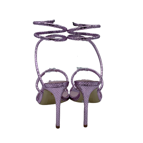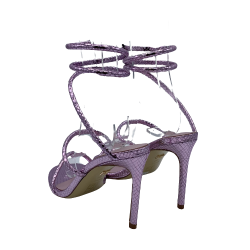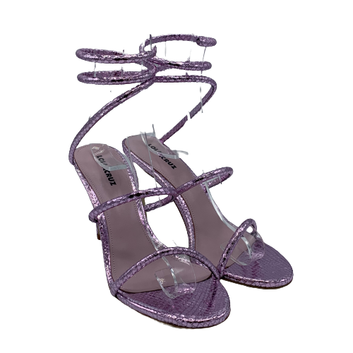 Sandalo Lola Cruz in pelle stampata con effetto pitonato lilla