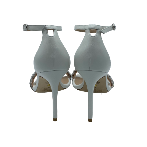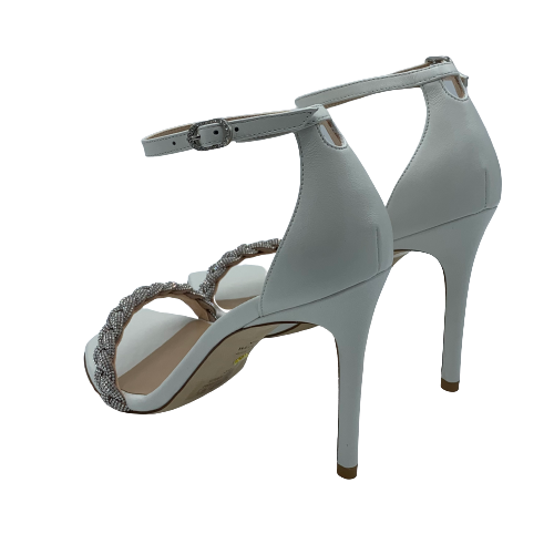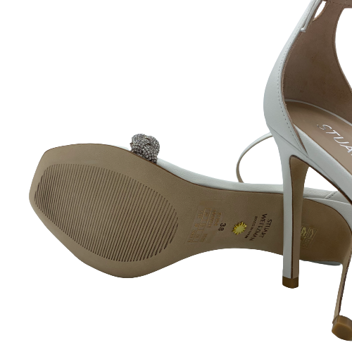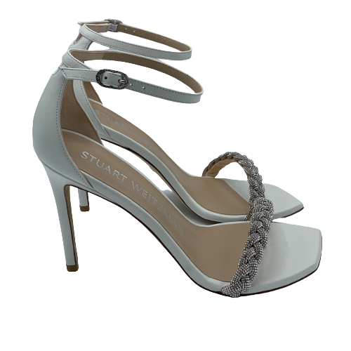 Sandalo Stuart Weitzman in Pelle Color Gesso mit Intrecciata Fascetta und Strassapplikationen