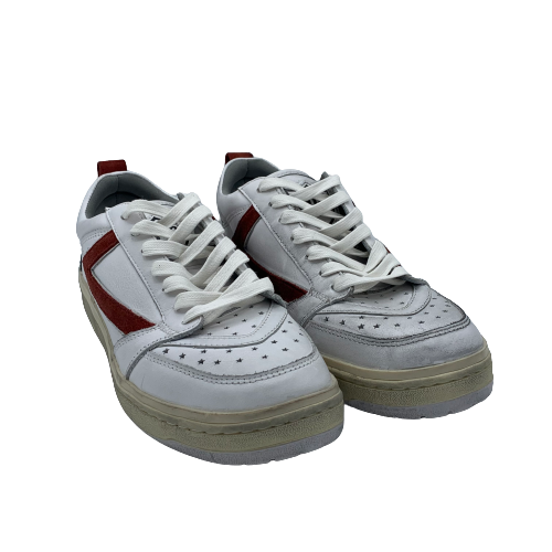 Sneakers HTC in pelle bianca con inserti in camoscio rosso