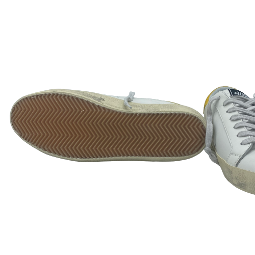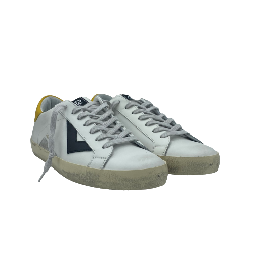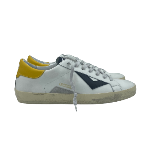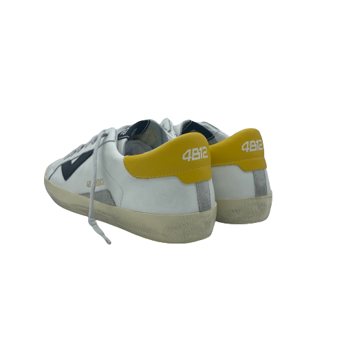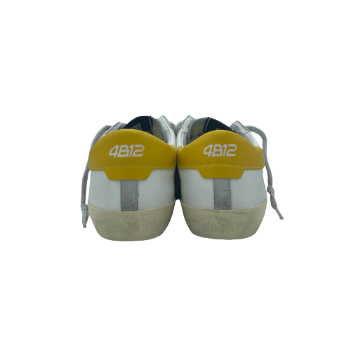 Sneakers 4B12 in pelle bianca con inserti in pelle nera e gialla
