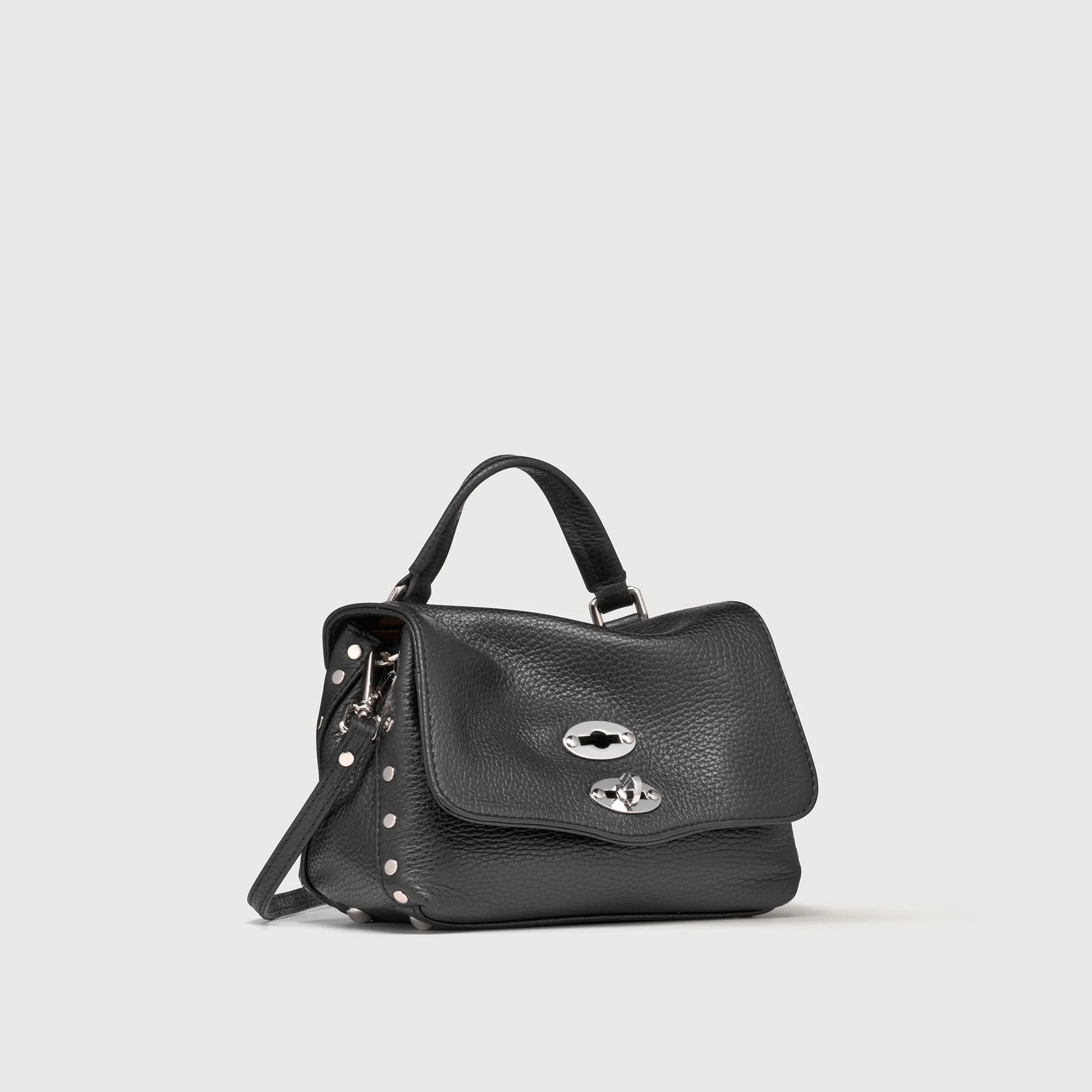 Non può mancare nel tuo guardaroba questa borsa Postina® in pelle martellata, con fodera e tasca interna e doppia chiusura. Realizzata in morbida pelle di vitello e sottoposta a speciali trattamenti che la rendono particolarmente resistente all’usura, allo sporco, ai graffi e allo sfregamento, oltre che idrorepellente, è l’alleata ideale per i tuoi impegni di tutti i giorni. Grazie alla tracolla in pelle regolabile, puoi scegliere se indossarla a mano, a spalla o a tracolla.