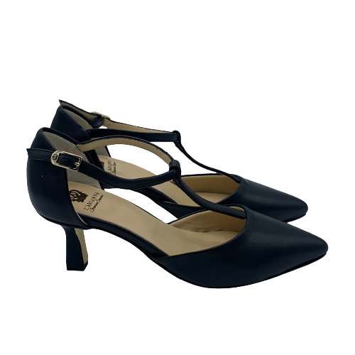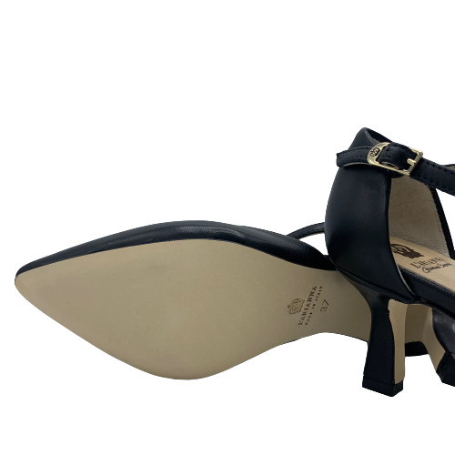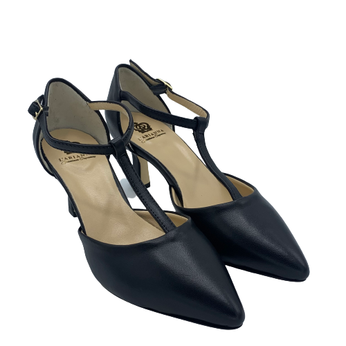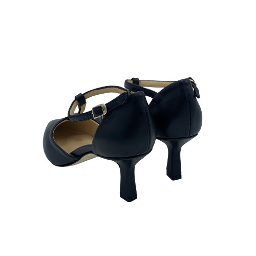 Tangherina L’ Arianna a punta in pelle nera con cinturino a T