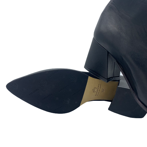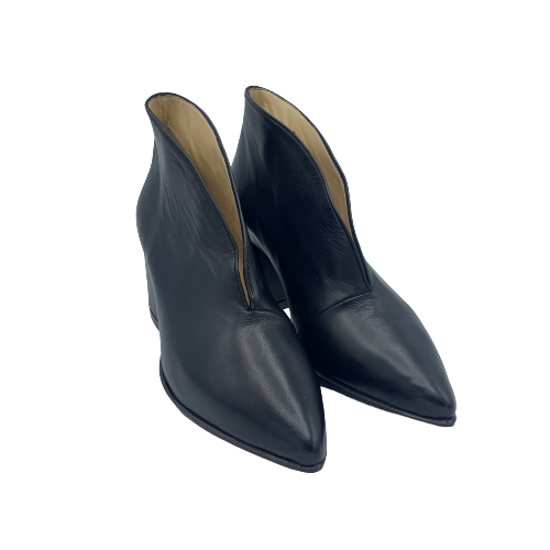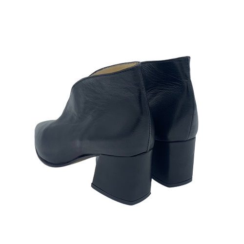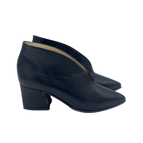Tronchetto a punta L’Arianna in pelle nera con scollo a V