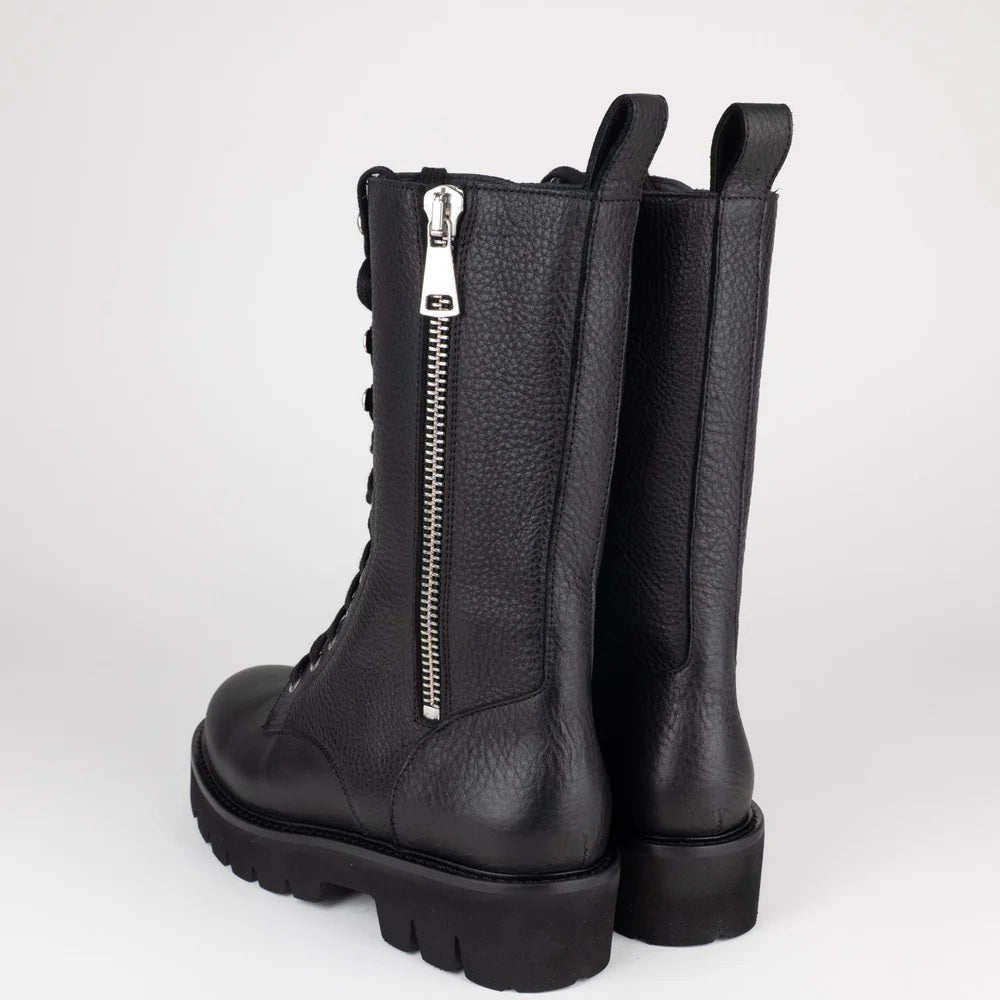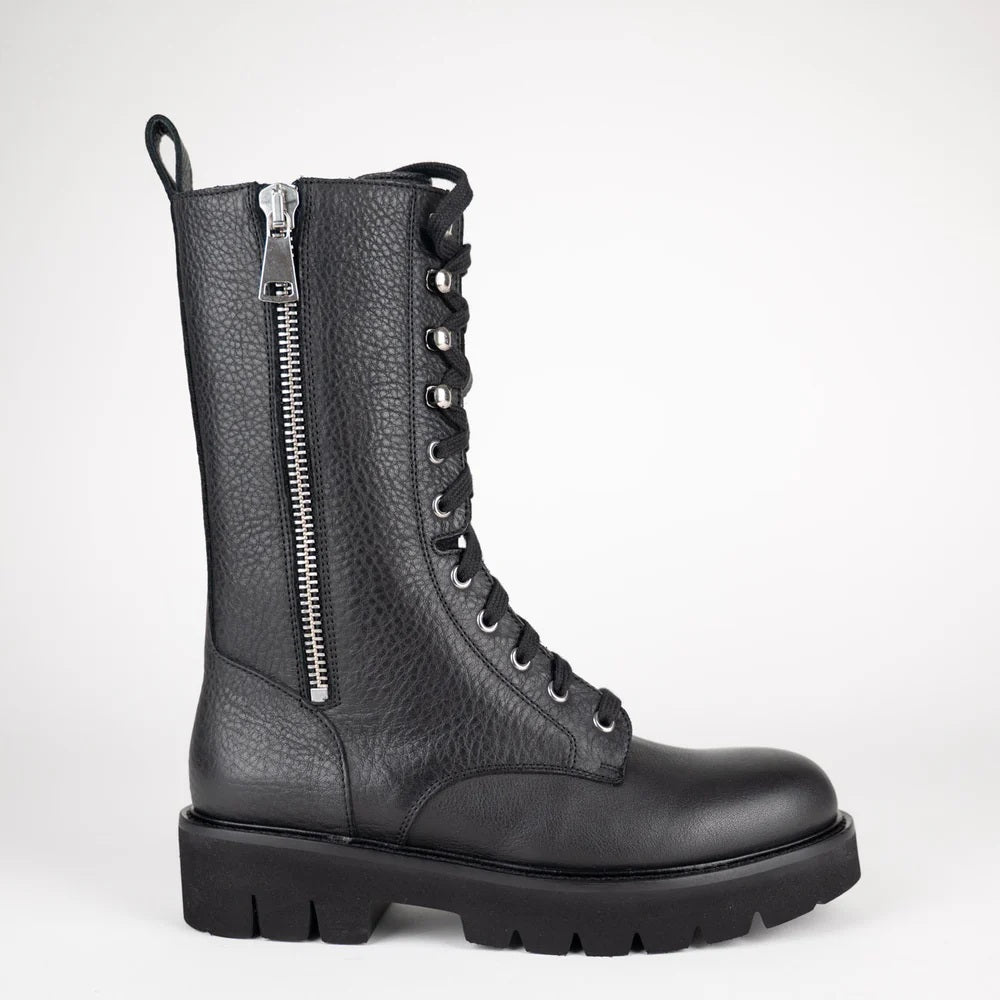 Gli anfibi perfetti per dare carattere a ogni look: realizzati in pelle martellata, con suola carrarmato e zip laterale che unisce praticità e stile deciso.