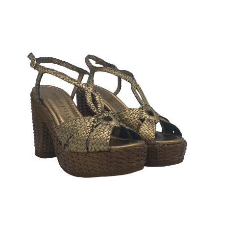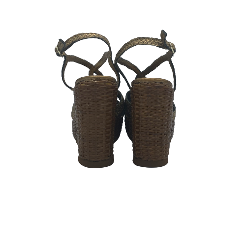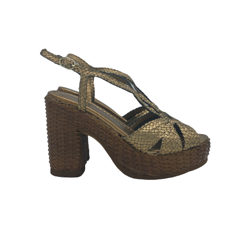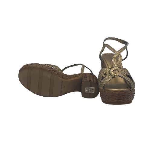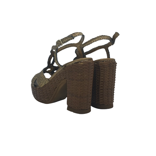Sandalo Pons Quintana in pelle laminata bronzo intrecciata e midollino