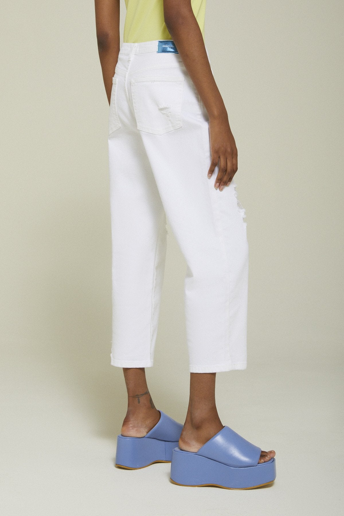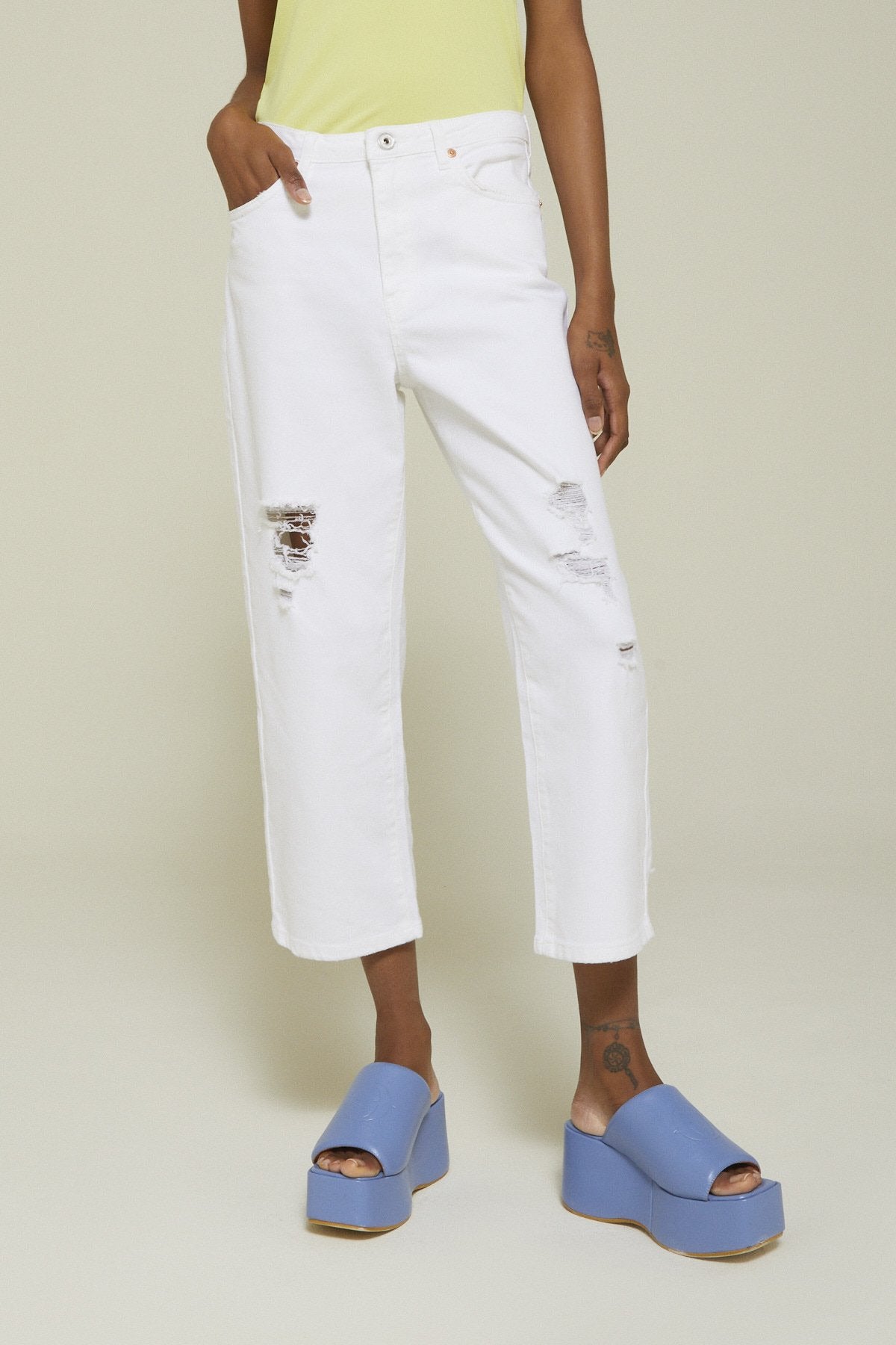Jeans Straight Ankle in puro cotone con rotture.
