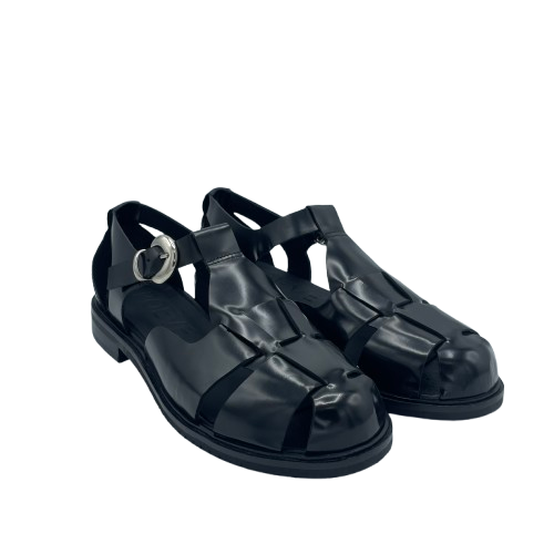 Sandalo ragnetto Poesie Veneziane in pelle abrasivata nera