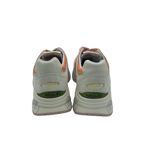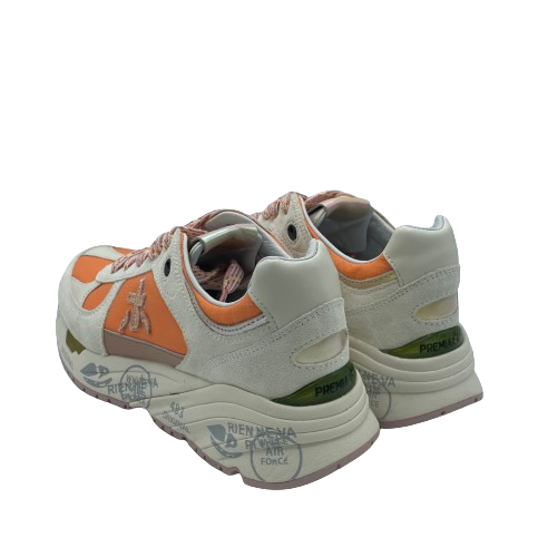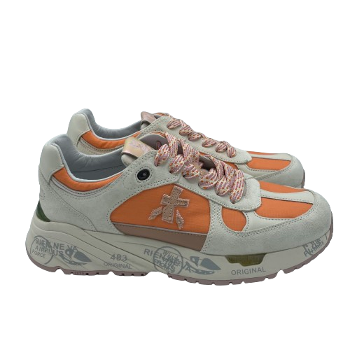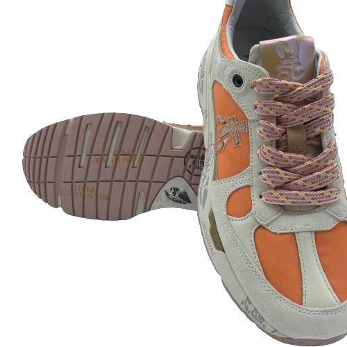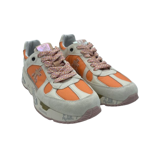 Sneakers Premiata Mase in tessuto arancione, pelle e camoscio beige