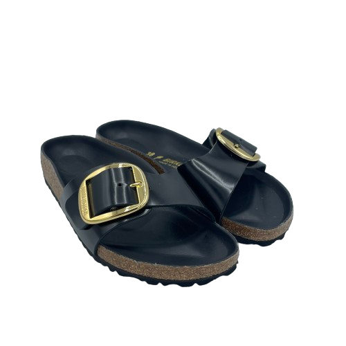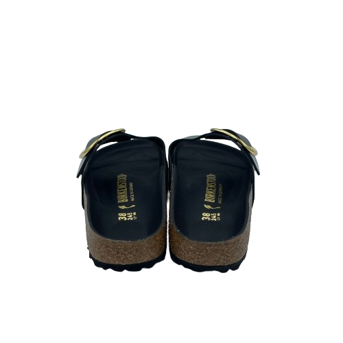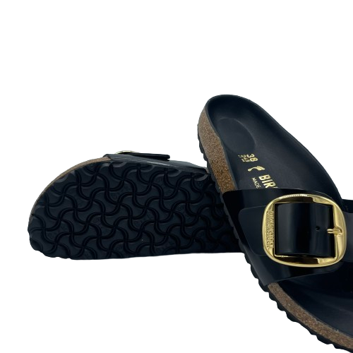Il modello BIRKENSTOCK Madrid è un vero classico che entusiasma il mondo della moda con il suo design essenziale. La variante Big Buckle presenta una fibbia ad ardiglione grande ed elegante, un bel particolare che spicca su questi sandali molto sobri. Il sottopiede del plantare semi-exquisit è rivestito in morbida pelle liscia in colore coordinato alla scarpa. La tomaia è composta da pelle nabuk particolarmente spessa e oliata, lavorata a cuciture aperte.