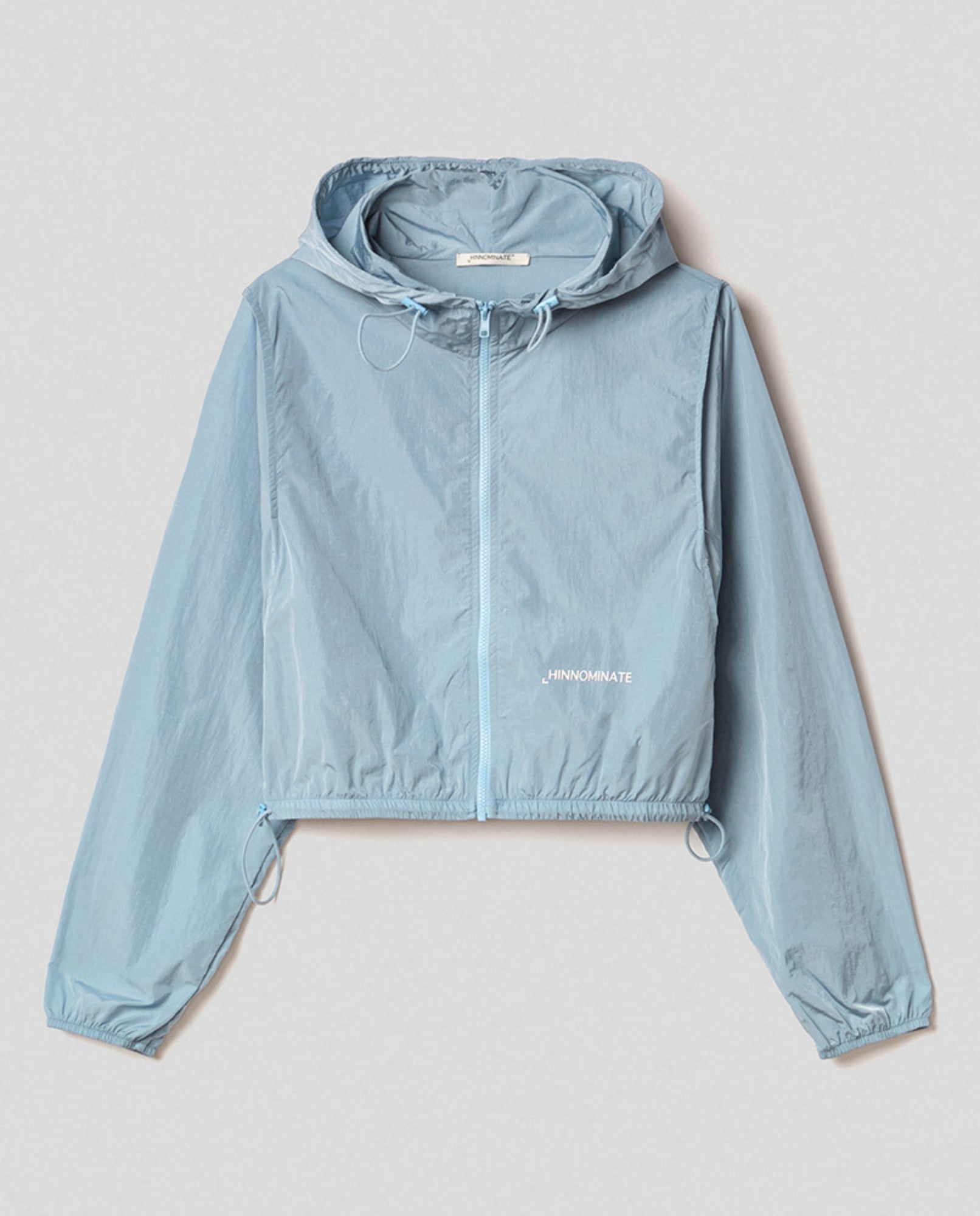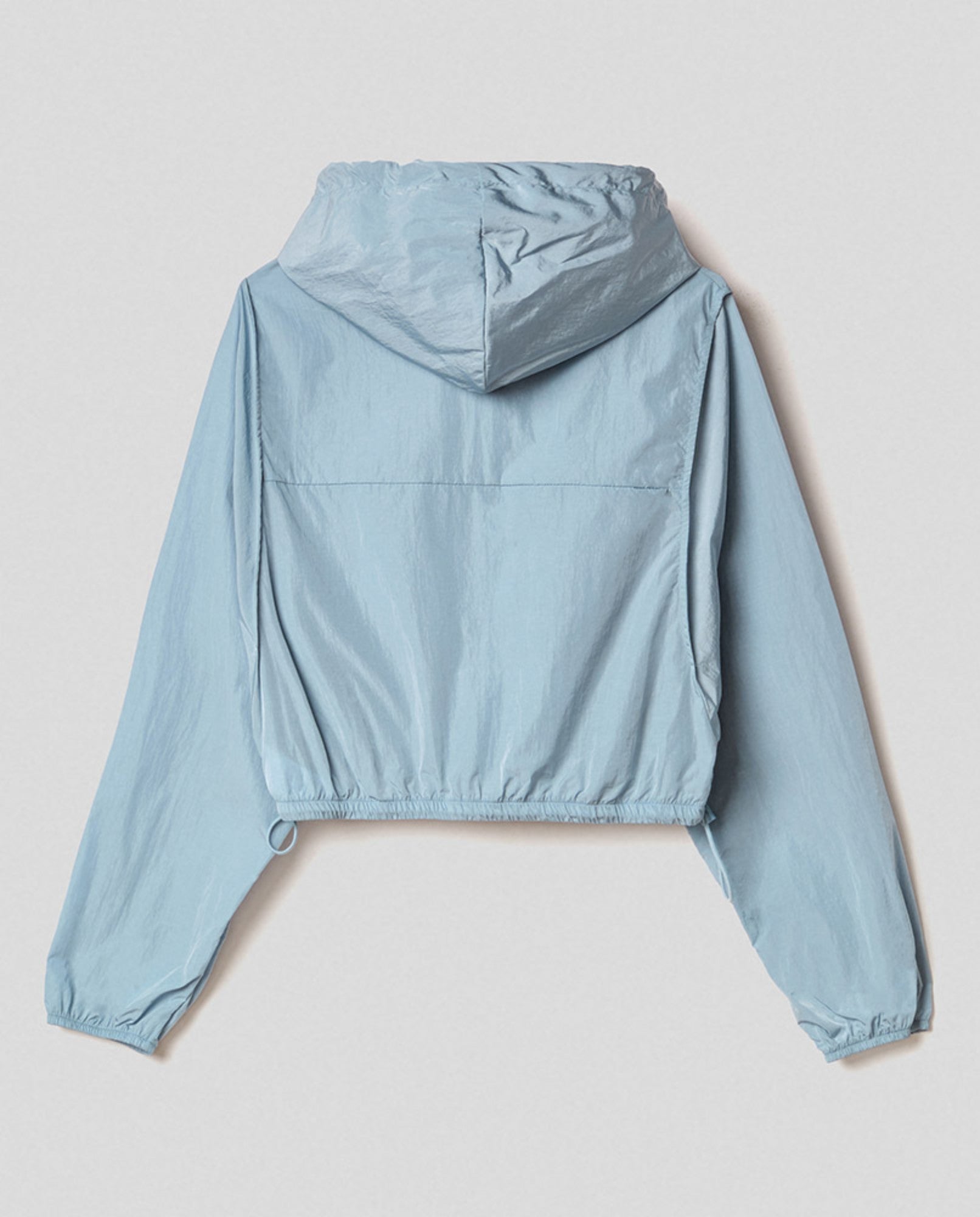 Giubbino in nylon con cappuccio con cordoncino regolabile al fondo