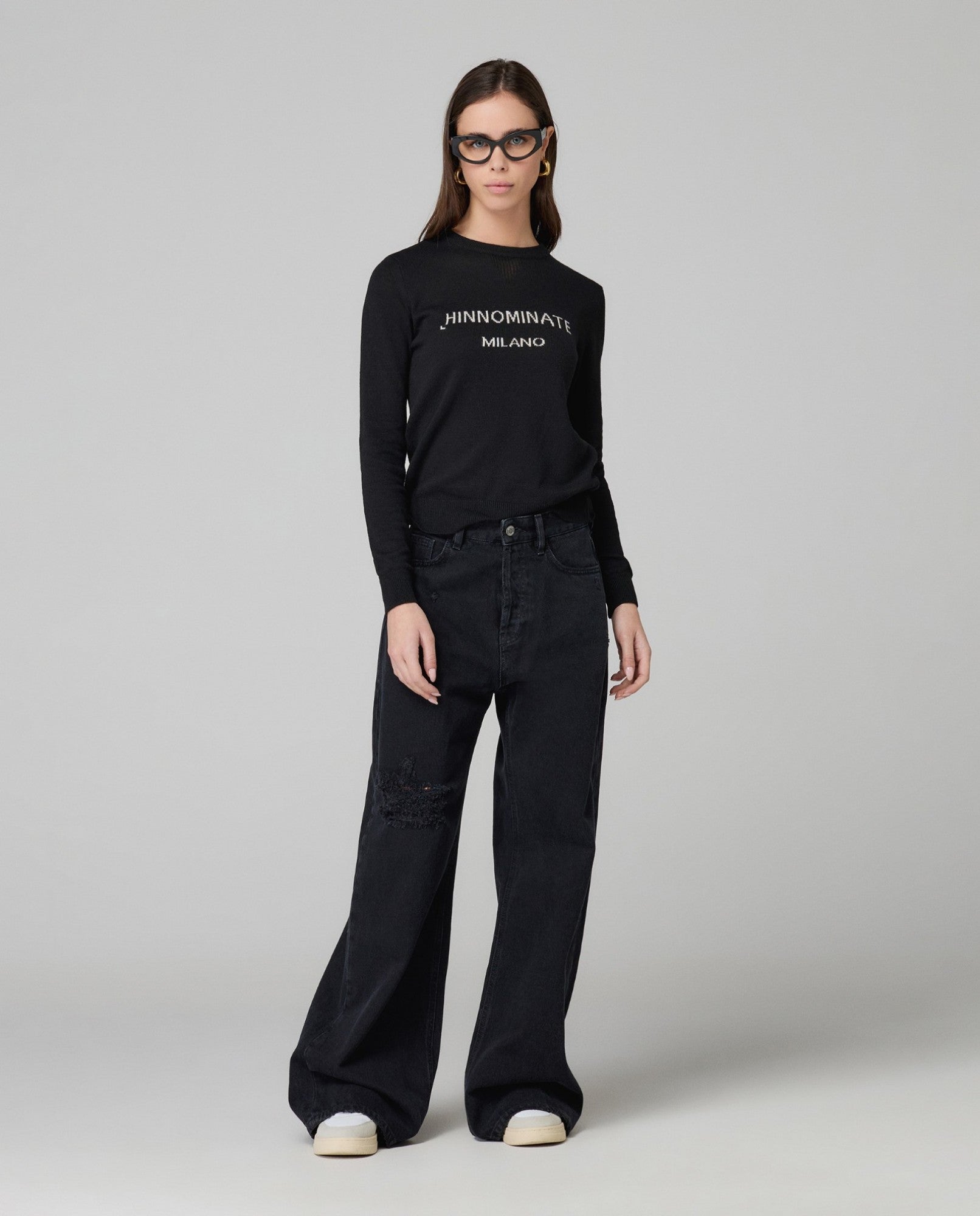 Maglia Paricollo Con Intarsio In Misto Cashmere