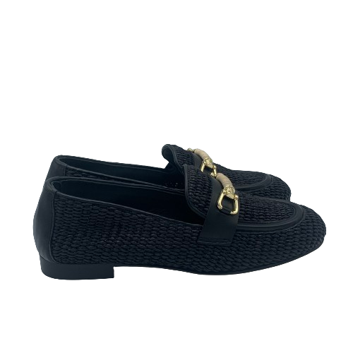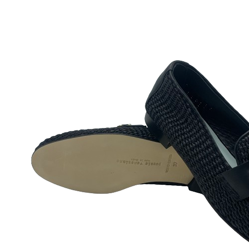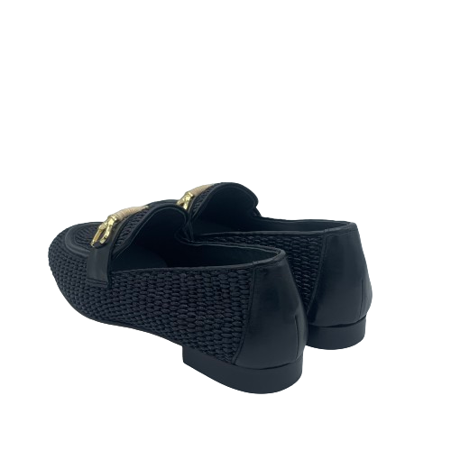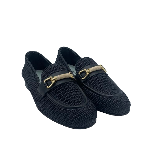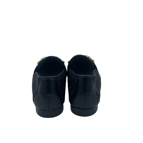 Mocassino Poesie Veneziane in midollino nero con inserti in pelle nero