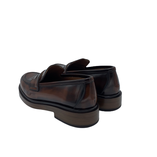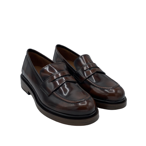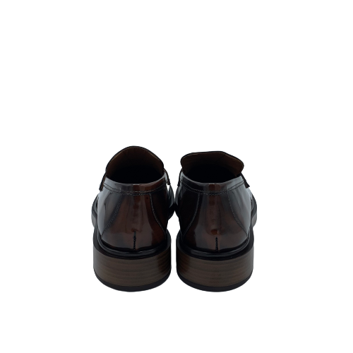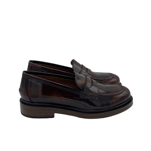 Mocassino college Pons Quintana in pelle marrone con effetto lucido