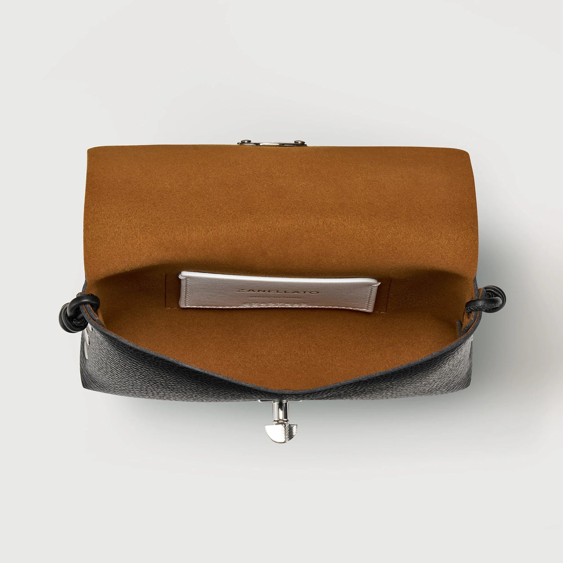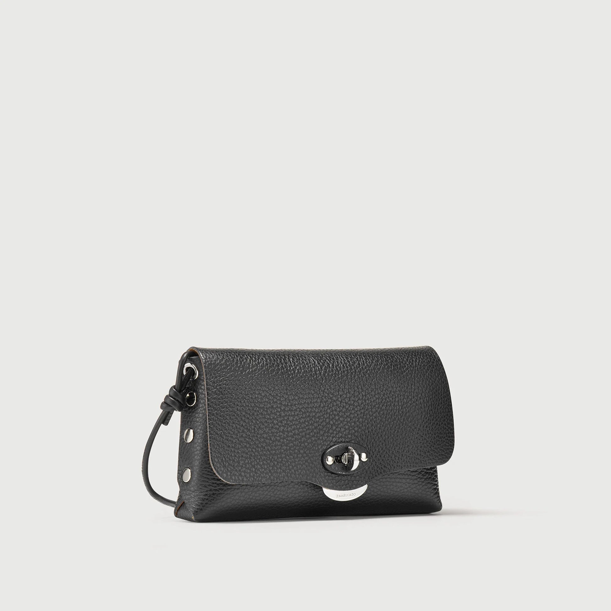 Pochette Lettera è la mini bag in pelle martellata, dotata di tracolla regolabile