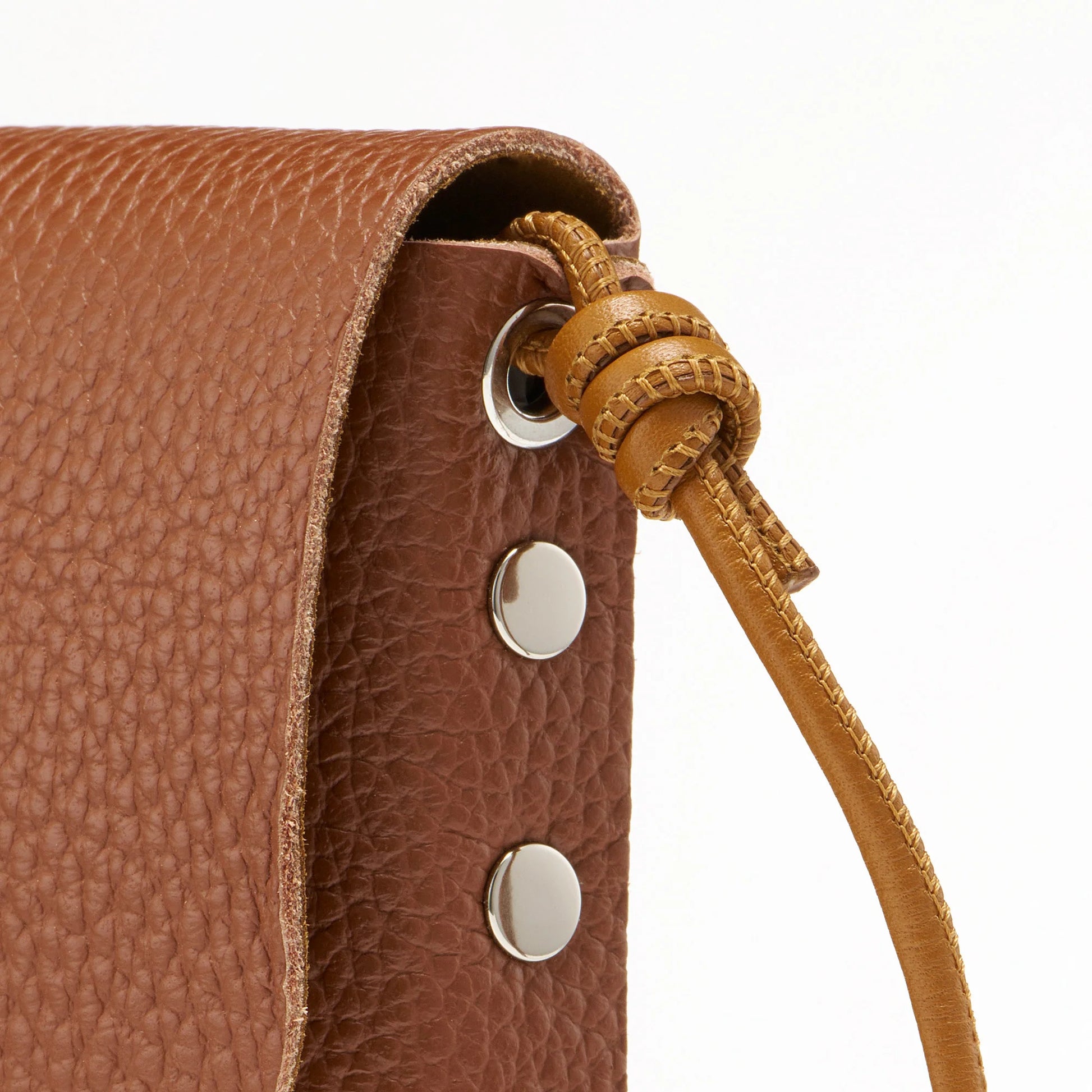 Pochette Lettera è la mini bag perfetta per le tue serate in città. In morbida pelle martellata, è dotata di tracolla regolabile, perfetta per essere indossata con ogni look