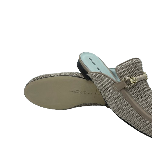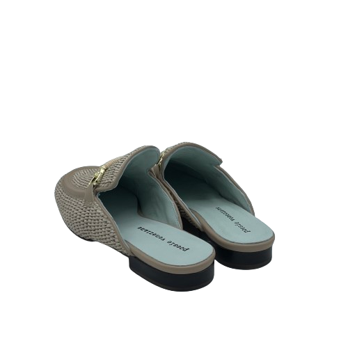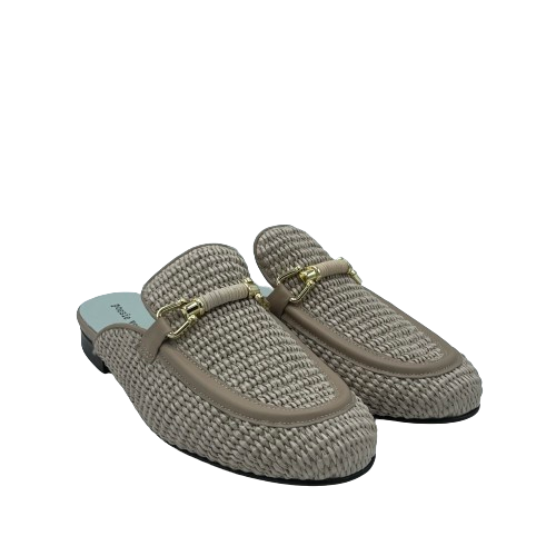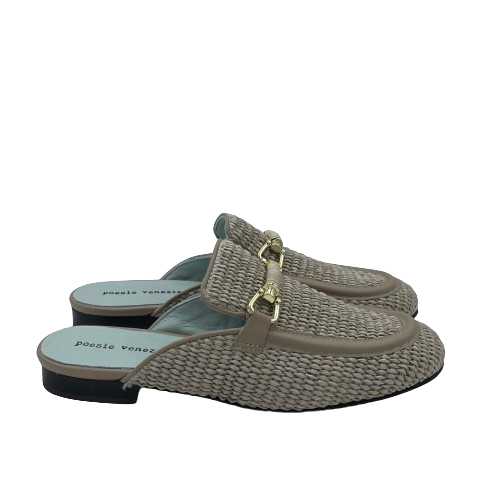 Mocassino sabot Poesie Veneziane in midollino beige con inserti in pelle beige