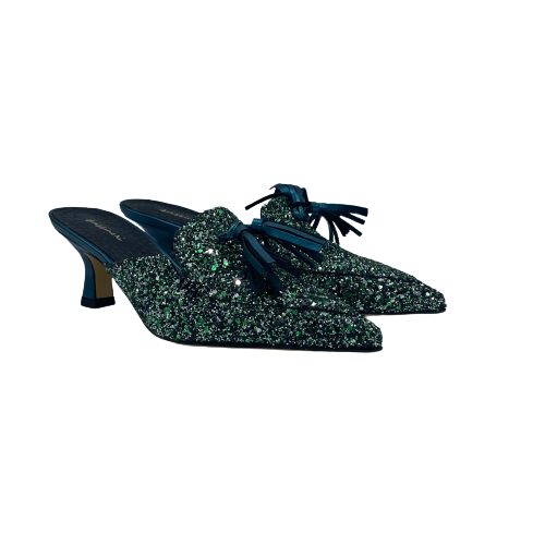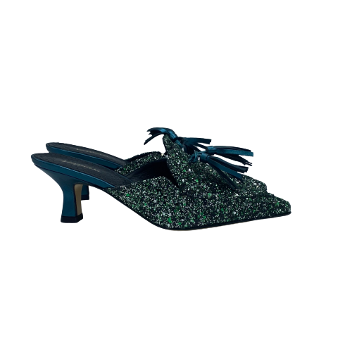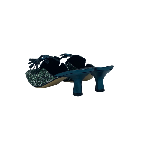 Sabot Sassi Neri a punta in tessuto glitterato color ottanio