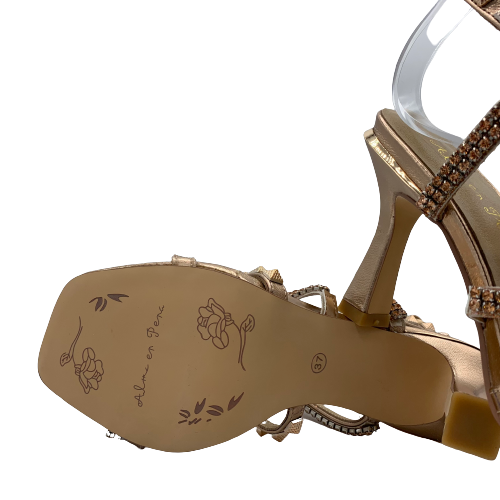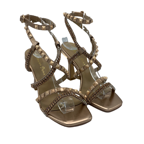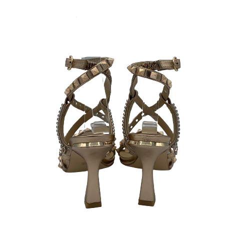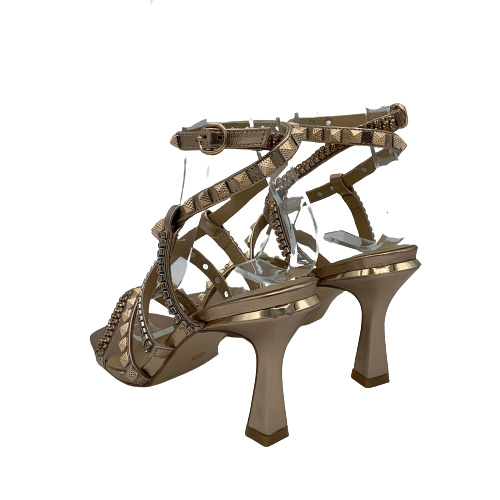 Sandalo gioiello Alma en Pena in nappa laminata rosa con borchie e strass