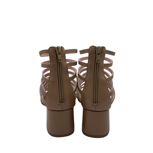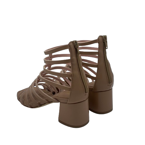 Sandalo Anna F con fascette in pelle color camelia