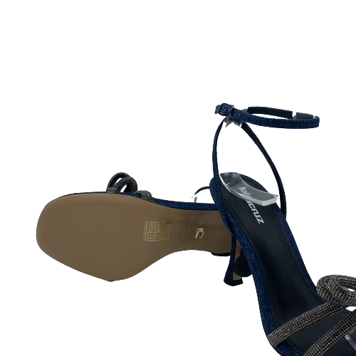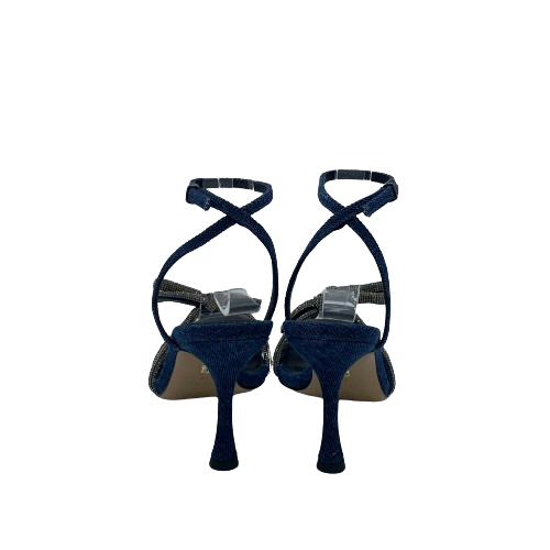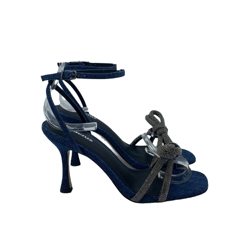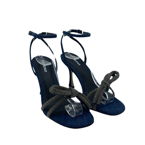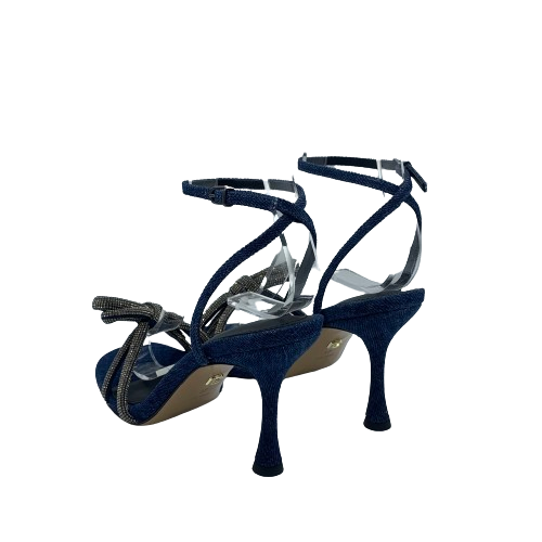 Sandalo Lola Cruz in denim con fiocco di strass color argento