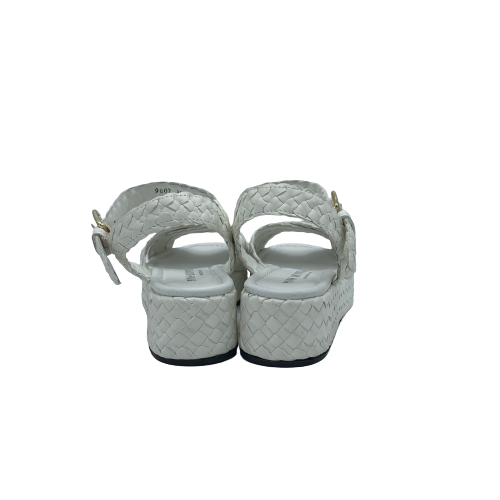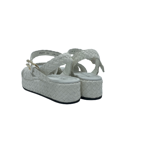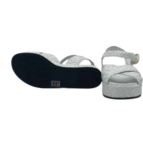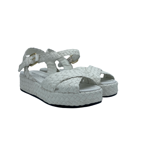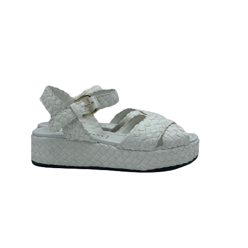 Sandalo Pons Quintana incrociato e con cinturino in pelle intrecciata bianco