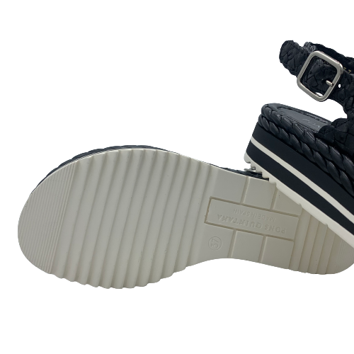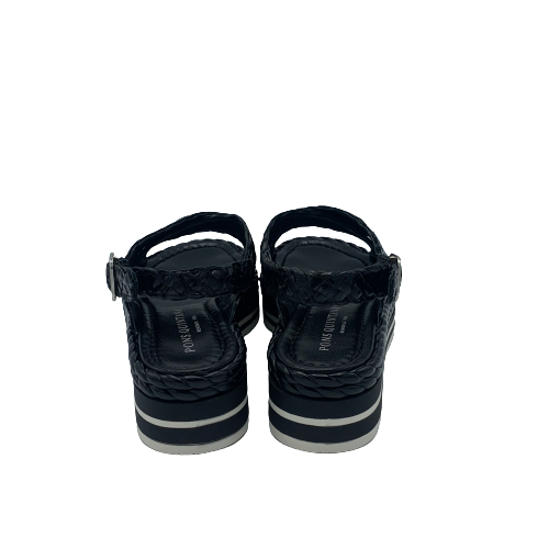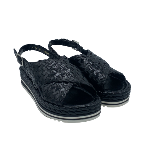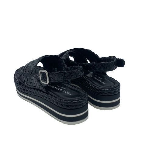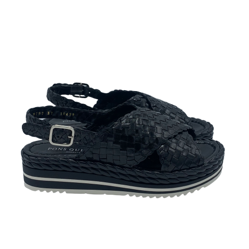 Sandalo Pons Quintana con incrocio in pelle intrecciata nera