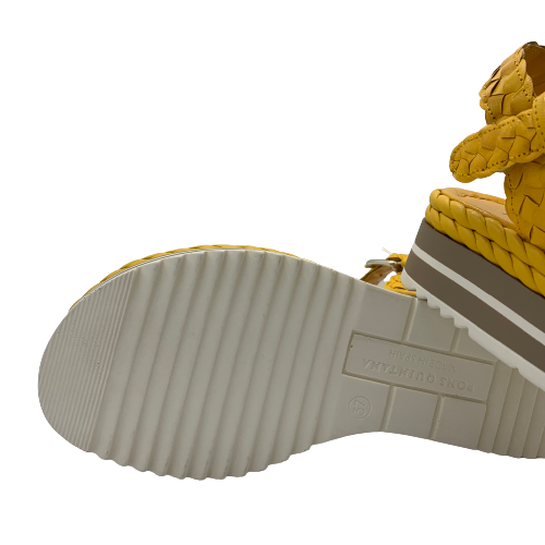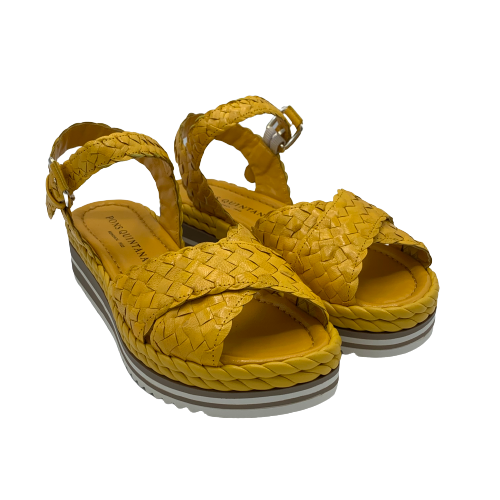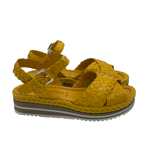Sandalo Pons Quintana con incrocio in pelle intrecciata color papaya