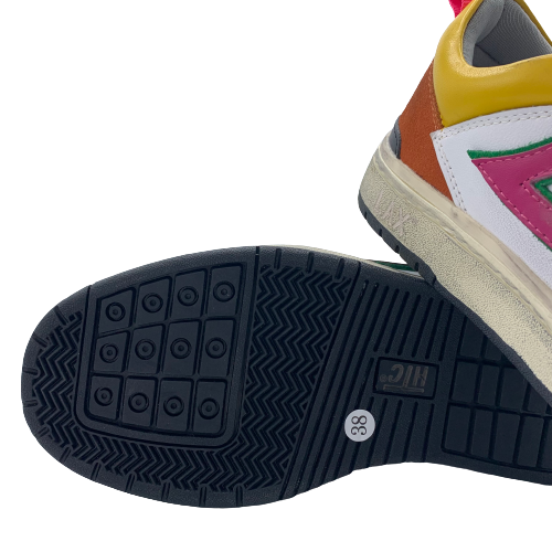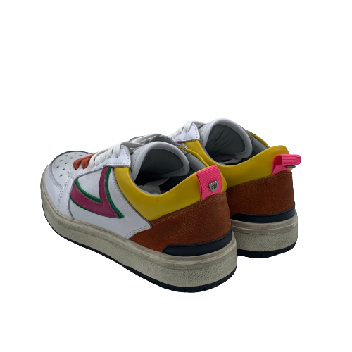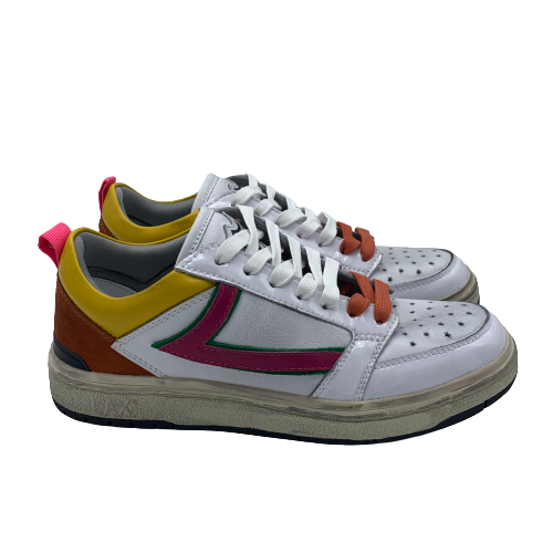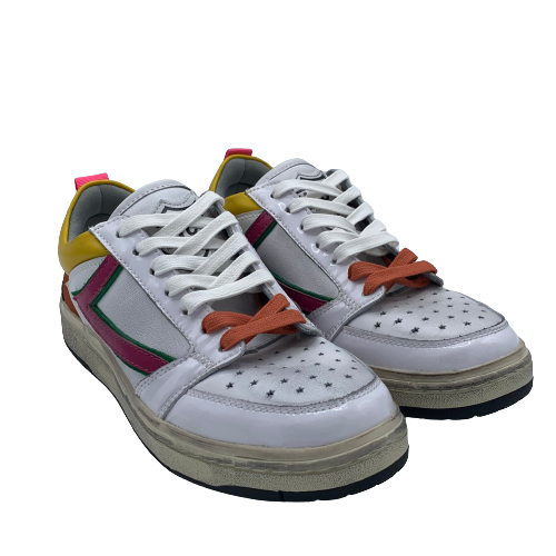 Sneakers HTC in pelle bianca con inserti in pelle e camoscio colorati