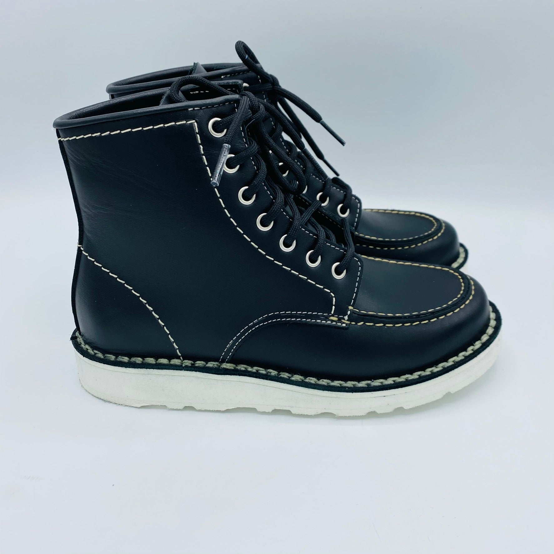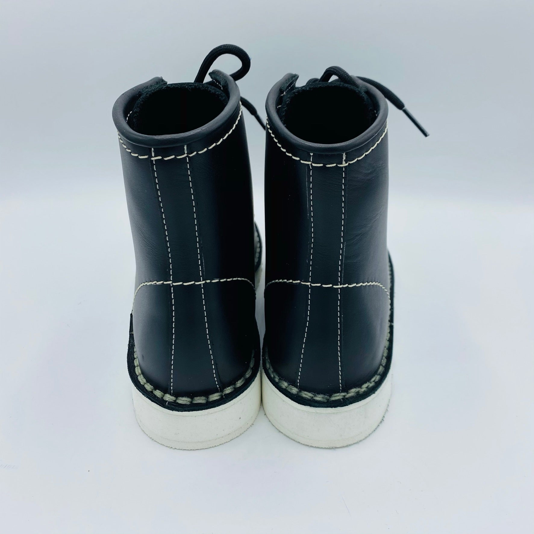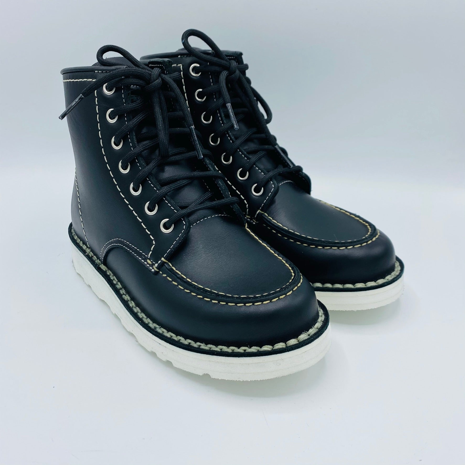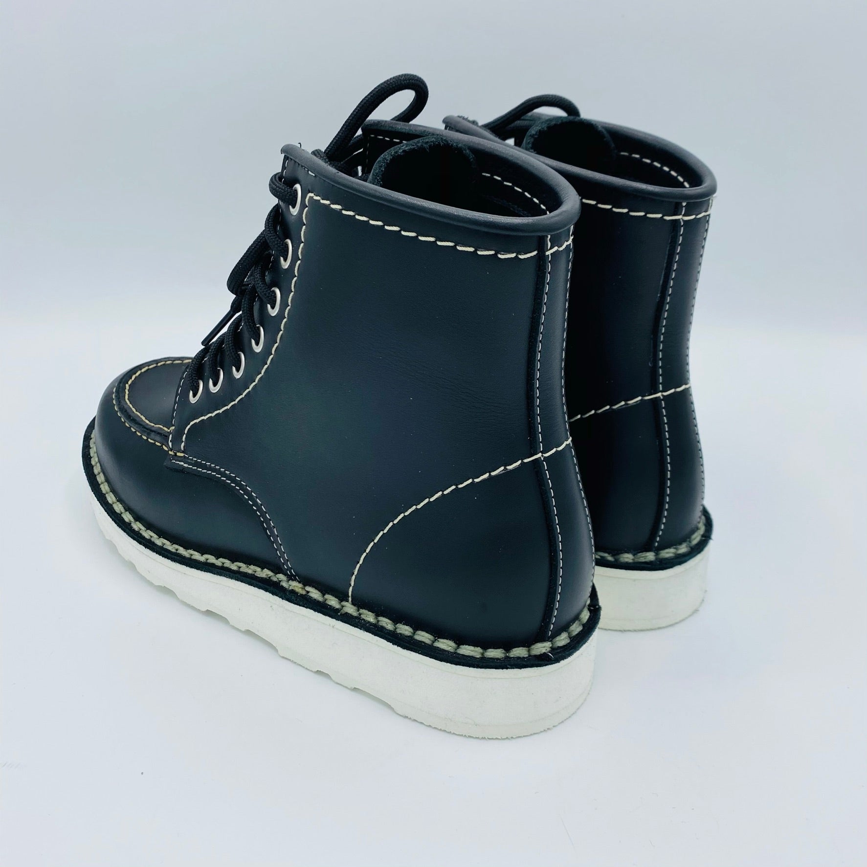 Scarponcino in pelle nera con fondo carroarmato bianco