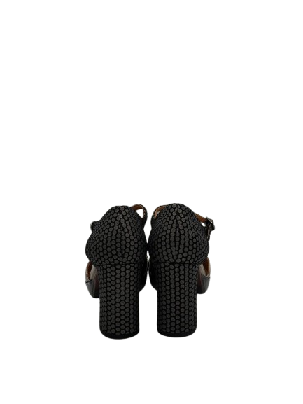Slingback Ditora di Chiemira con tacco 10 cm e plateau di 2 cm , retro in fantasia a rombi davanti in pelle cracckata in colore Iron .