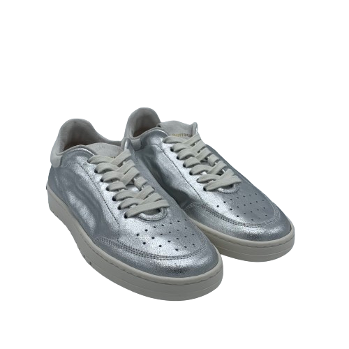 Sneakers Barracuda in pelle laminata argento con inserti in camoscio bianco