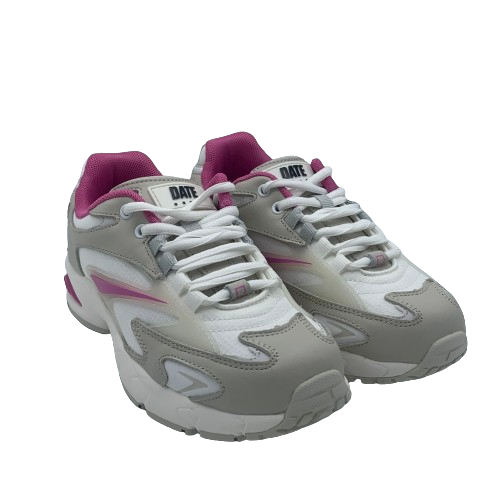 Sneakers D.A.T.E. In tessuto e pelle bianco con inserti fucsia
