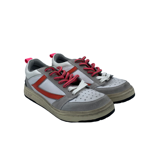 Sneakers HTC in pelle bianca con inserti in pelle arancio e camoscio grigio