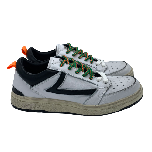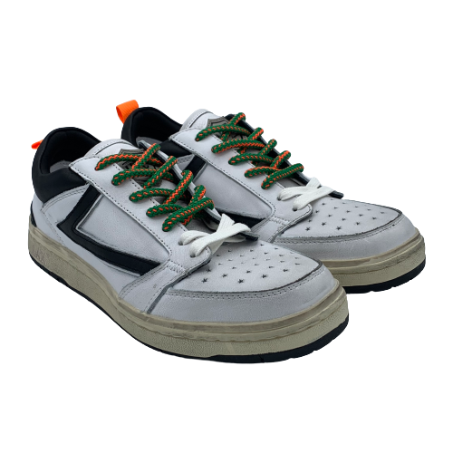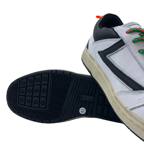 Sneakers HTC in pelle bianca con inserti in pelle nera sul tallone