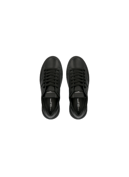 Temple è la sneaker high-fashion di Philippe Model Paris d'ispirazione anni '90. Il modello uomo in pelle di vitello con logo ricamato su talloncino verde a contrasto è il perfetto compromesso tra stile e comodità. La suola è leggermente oversize ma senza rinunciare alla leggerezza.
