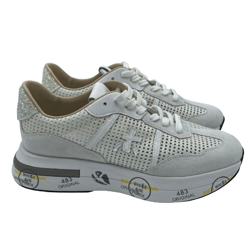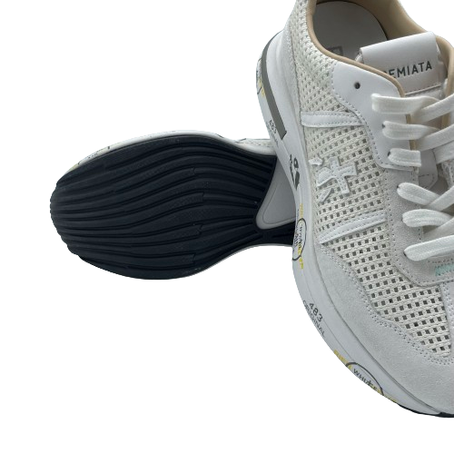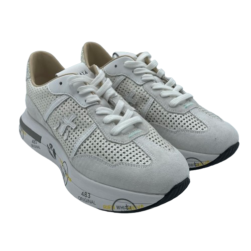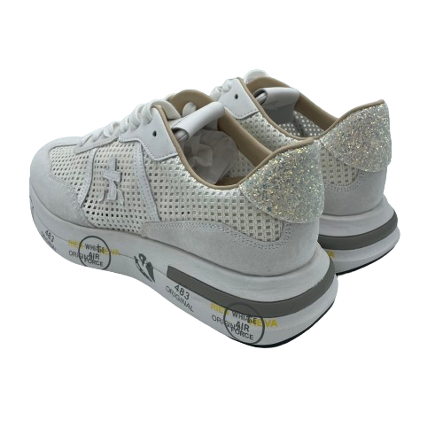 Sneakers Premiata Cassie in tessuto traforato bianco e camoscio bianco
