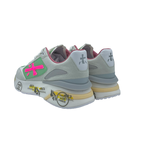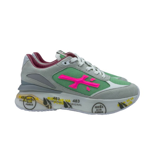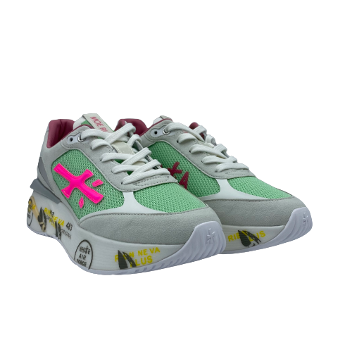 Nuovo Concetto di Sneakers secondo Premiata ,in questo modello Moe run , in pelle misto tesstuto tecnico , fondo gomma