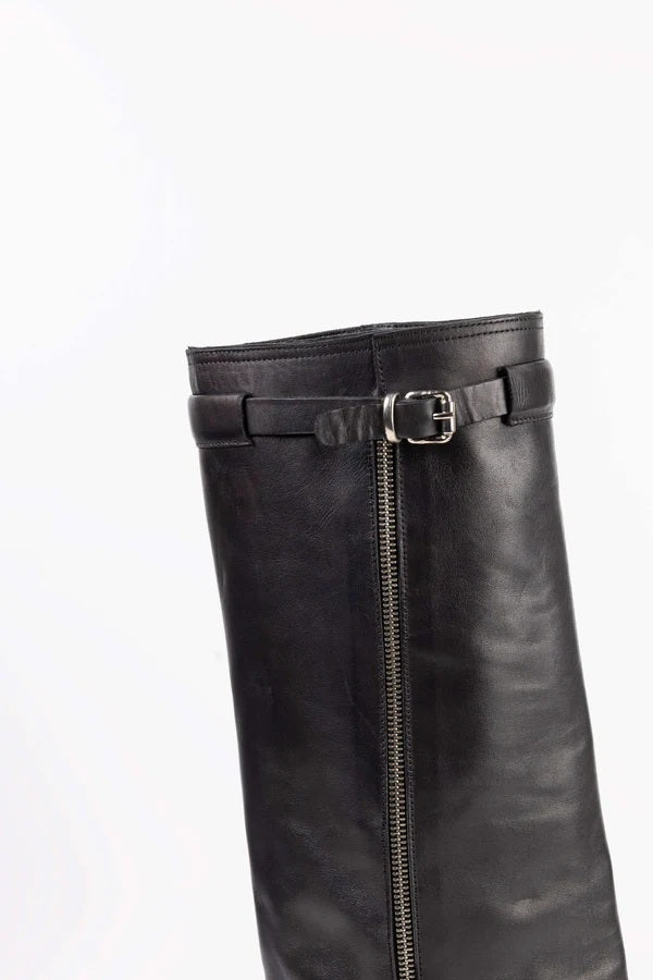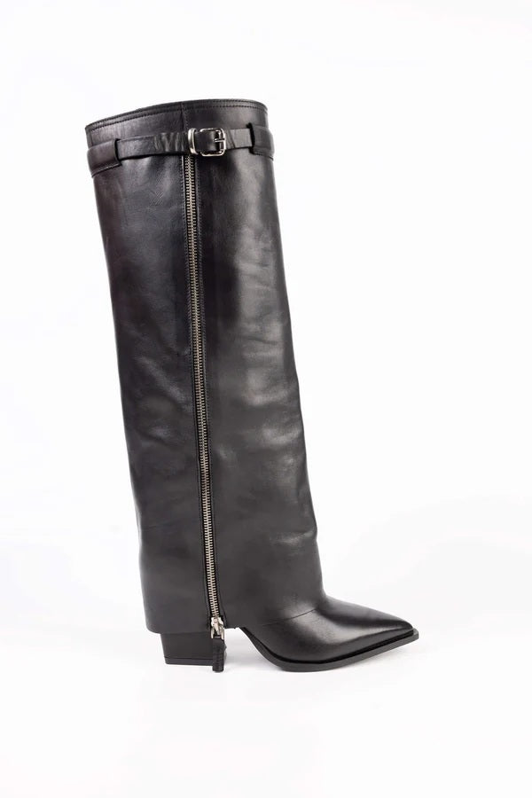 Gli stivali donna Lara in pelle rappresentano un connubio perfetto tra eleganza metropolitana e dettagli artigianali che fanno la differenza. Realizzati in morbida pelle di alta qualità, sono arricchiti da una fibbietta discreta ma grintosa, che aggiunge un tocco di carattere al design lineare e sofisticato.