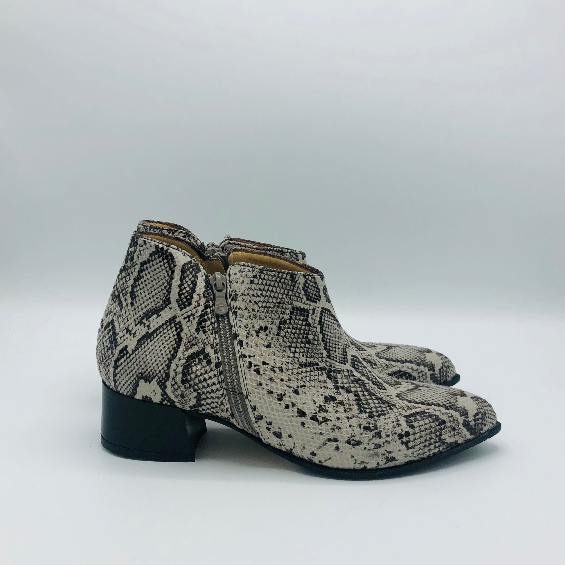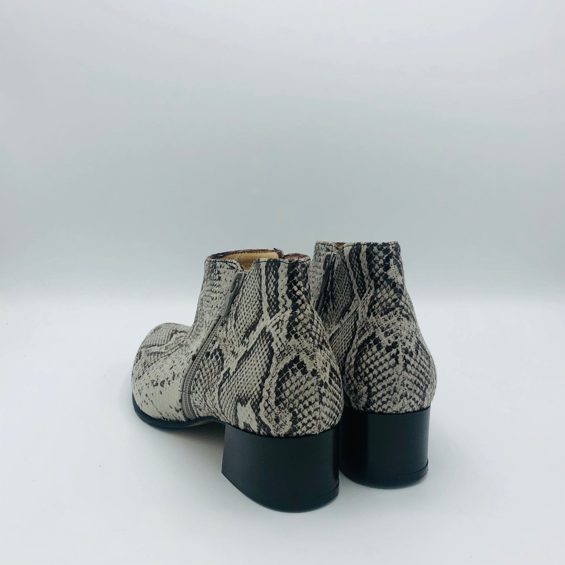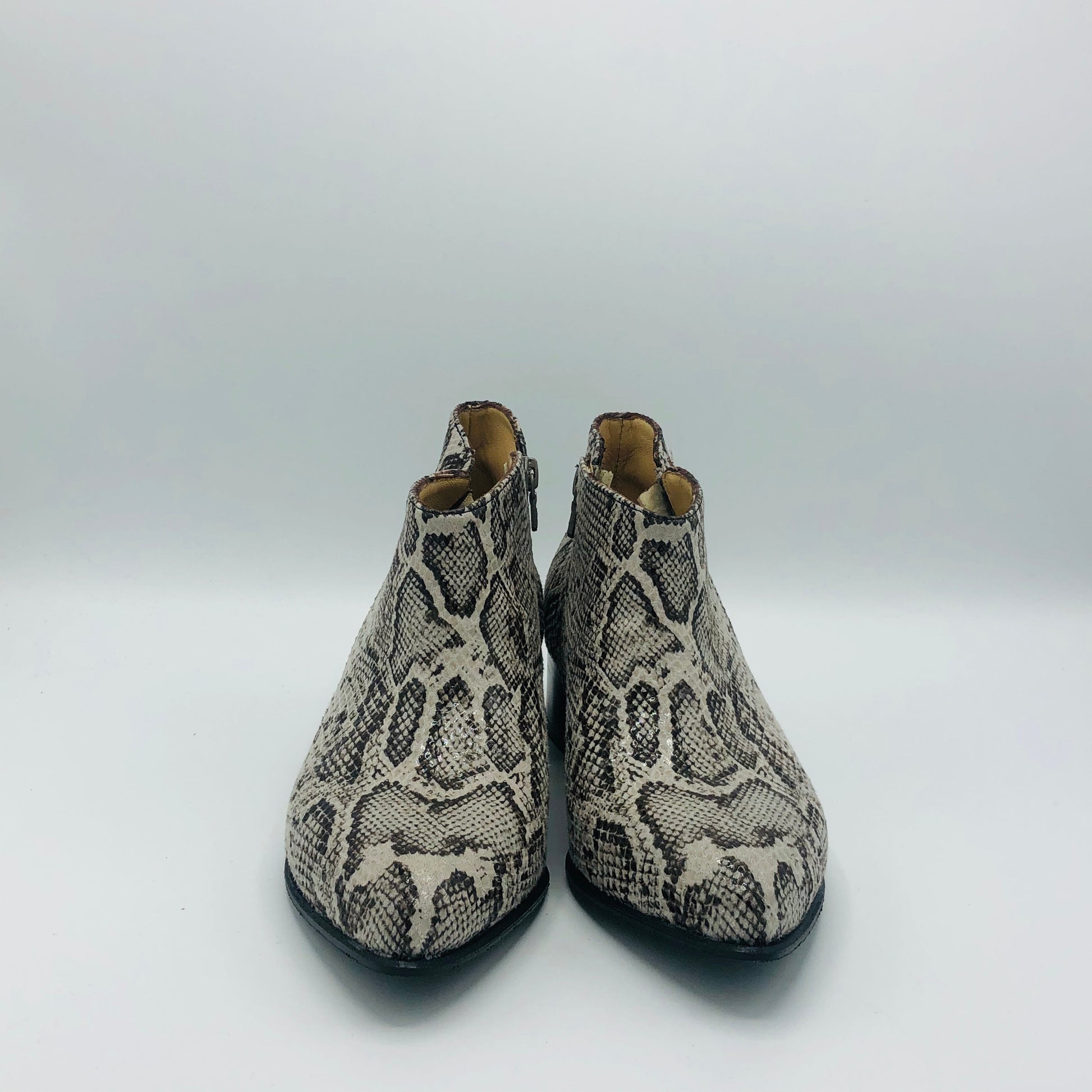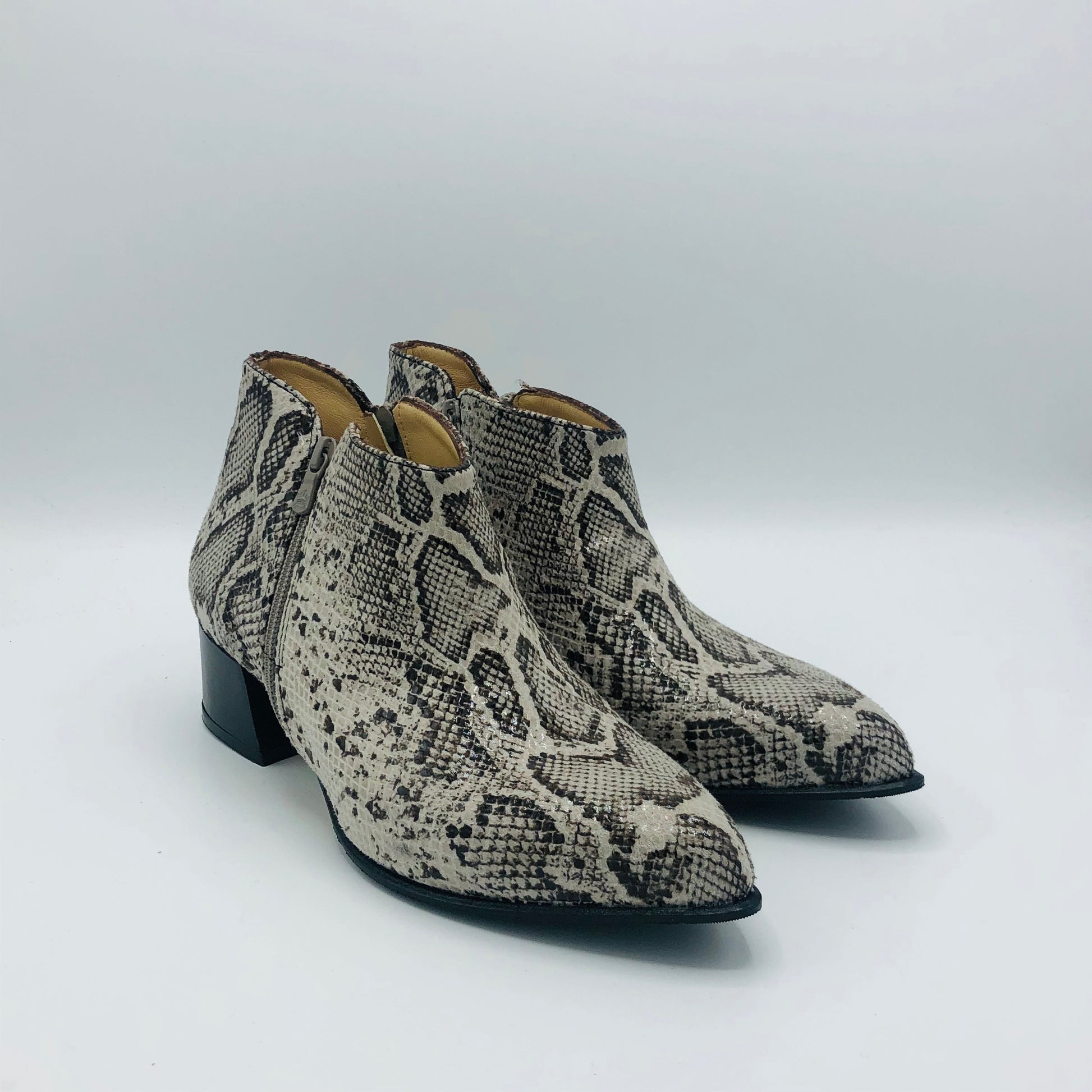 • Texanino in pelle stampata serpente con lavorazione a sacchetto e zip laterale